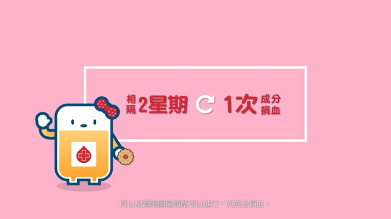 而在香港紅十字會輸血服務中心的科普視頻則清晰地說道:「相隔2個星期可以進行一次成分捐血」,並以文字說明「理論上成分捐血者可每隔兩星期捐贈血漿或血小板一次,每年不可超過24次」。