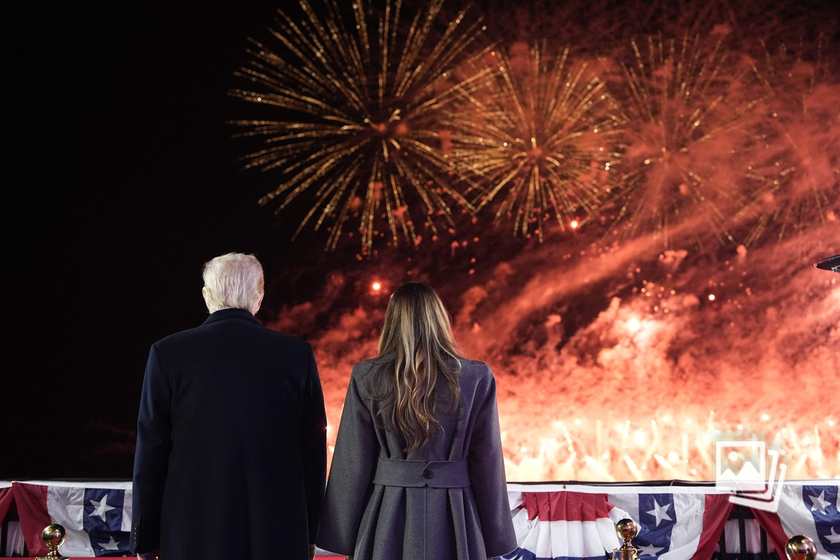 2025年1月18日,弗吉尼亞州斯特林,特朗普及家人觀看特朗普國家高爾夫俱樂部的煙花表演。據媒體披露的照片,從當晚特朗普和夫人欣賞煙花的背影來看,特朗普非常享受這種「君臨天下」的感覺。
