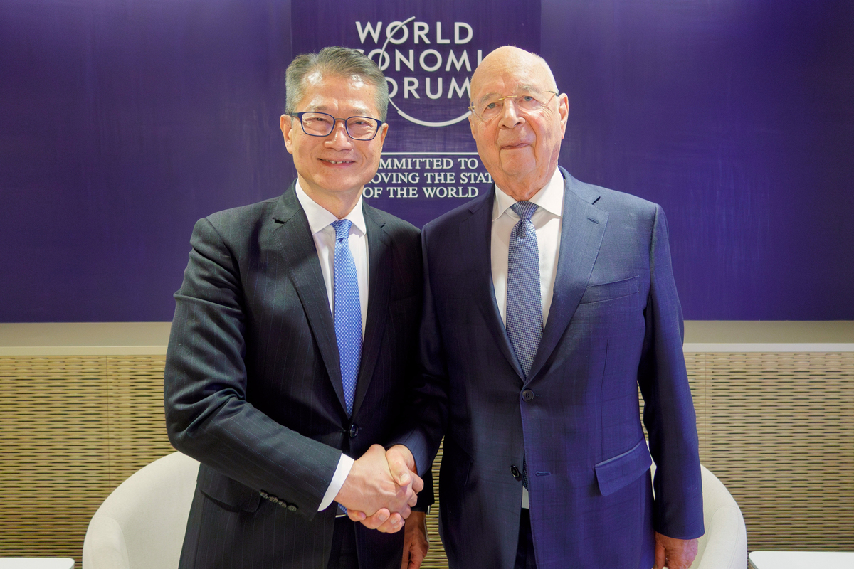 陳茂波其後與世界經濟論壇創辦人及執行主席施瓦布會面。陳茂波表示,願意與世界經濟論壇繼續加強在綠色轉型、金融服務發展、城市管理等不同領域的合作。