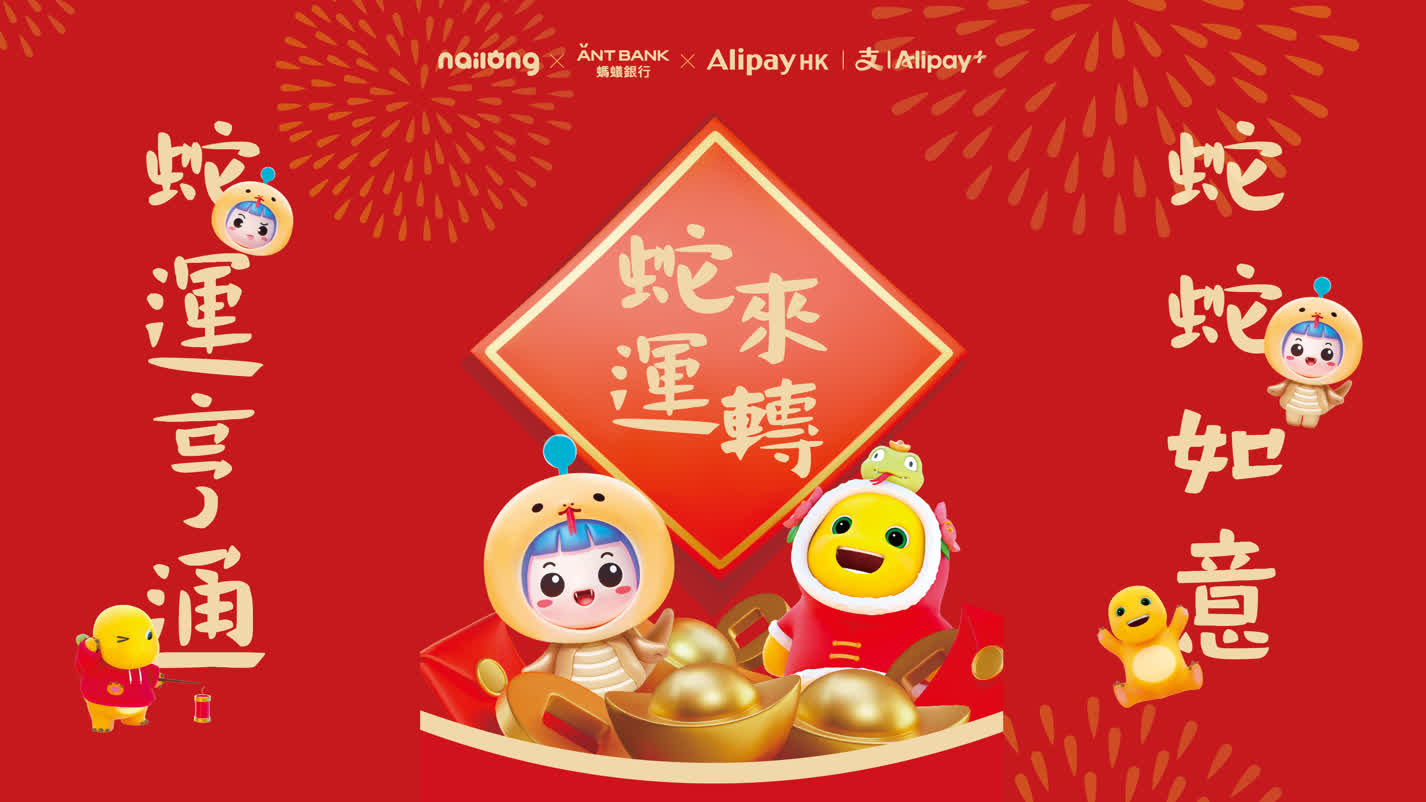 AlipayHK財神車將會全城遊走大派利是,其中1月25日及27日分別於尖沙咀海防道及旺角西洋菜南街現身,奶龍及AliSa換上蛇年慶歲服飾,在車上與大家拜個早年,同時亦特別邀請財神爺尹光及人氣型男組合OneUp一同勁派利是。