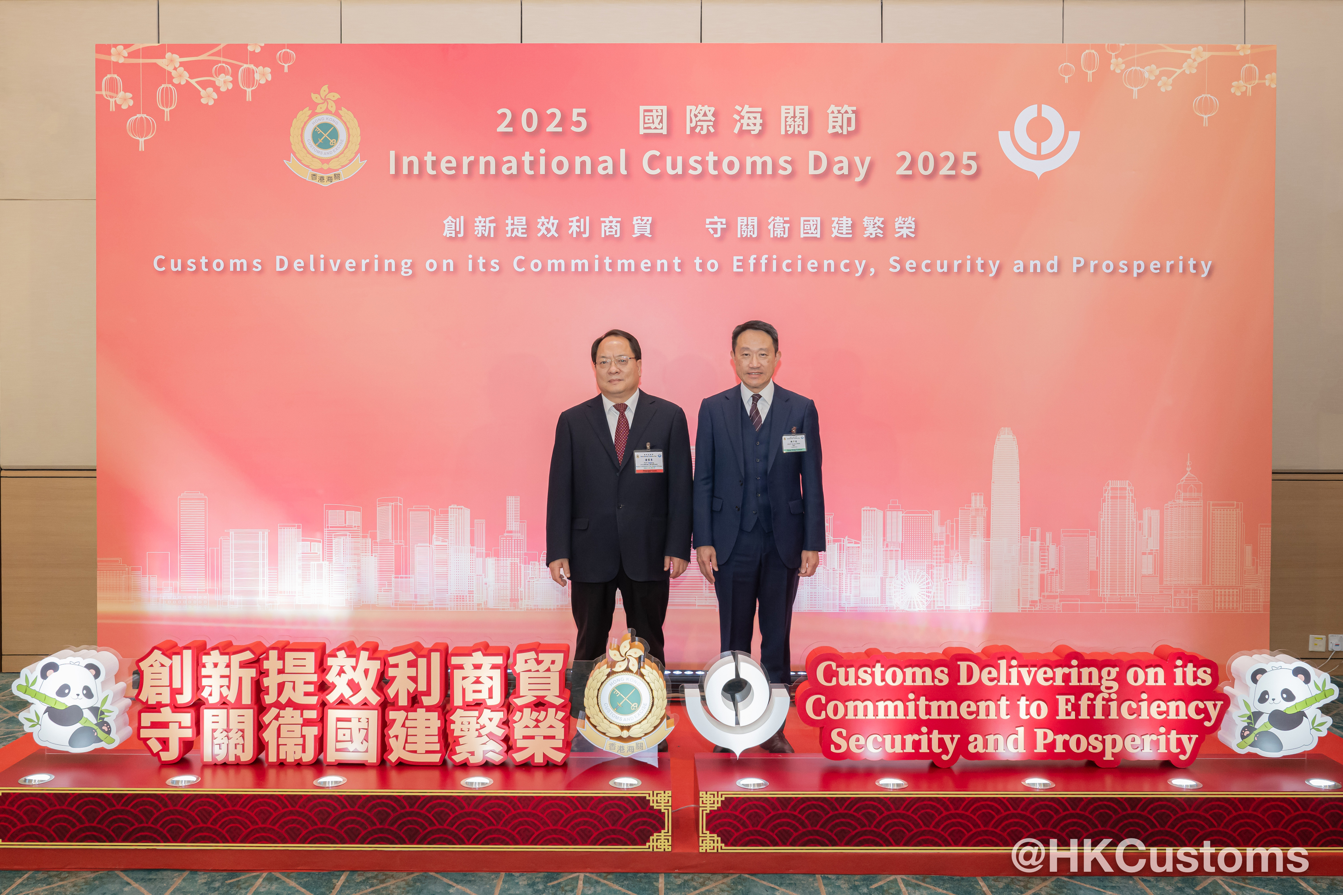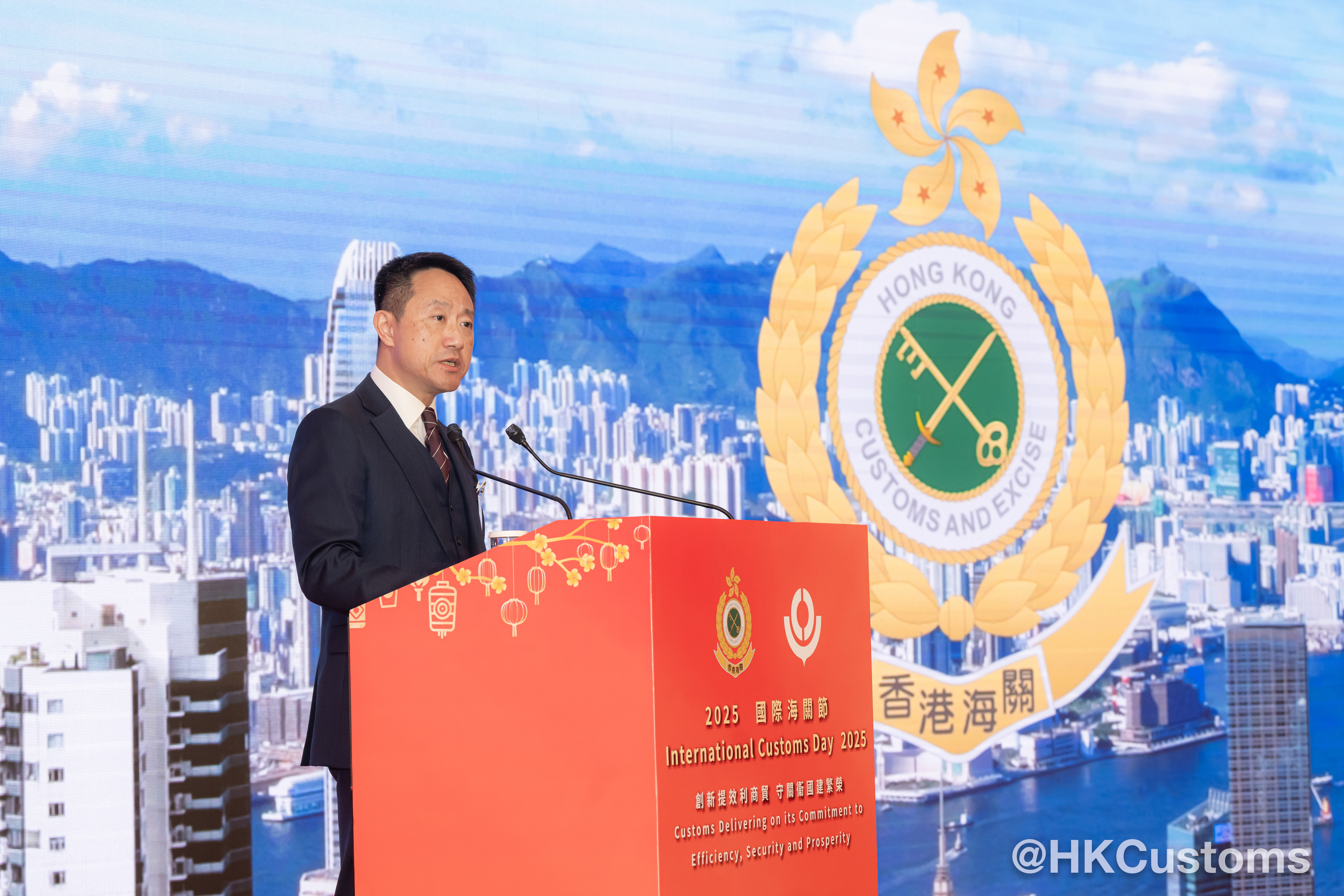 行政長官李家超透過錄影發表賀辭,讚揚香港海關在推動香港成為國際都會和貿易樞紐所作出的不懈努力。他強調,在「一國兩制」的原則下,香港同時集中國優勢和國際優勢於一身,他有信心香港海關將繼續推動國際合作,充分發揮香港作為「超級聯繫人」和「超級增值人」的獨特角色。