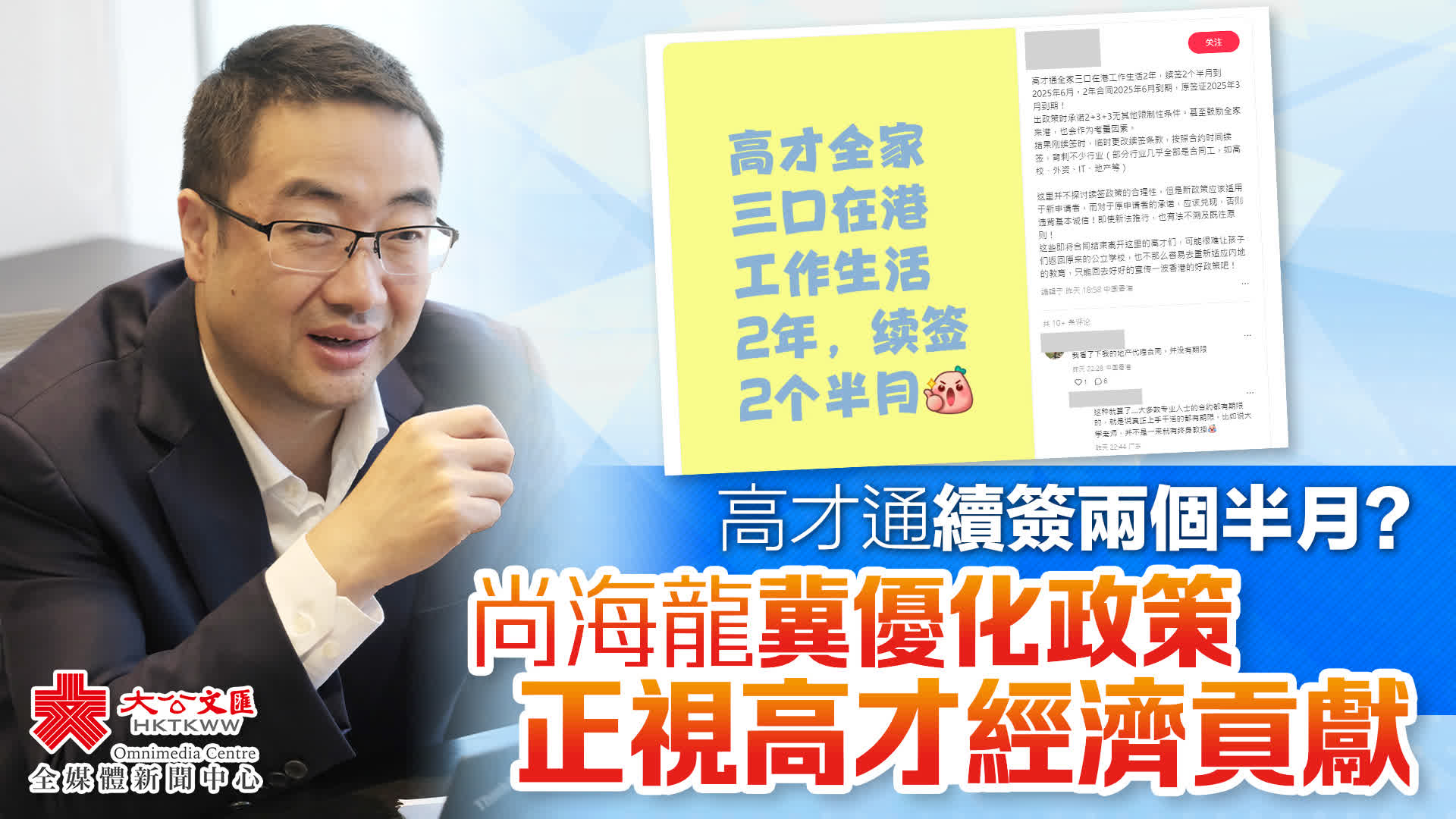 尚海龍說,明白審批部門有其法理依據,需要按照合約期判斷,如果合約期低過3年,就要以較短的時間為準,但相關做法難免會對高才造成困擾。以事主為例,對方得知高才通計劃便立即申請來港,很快就靠自己本事,獲得軟件開發工作,為香港貢獻自身力量的同時,亦要交稅。遺憾的是,其合約較早開始,相比之下,有些高才在接近續簽的時候,找到工作,卻可以換來更長的逗留期,事主認為非常不公平,指責政府漠視其經濟貢獻。