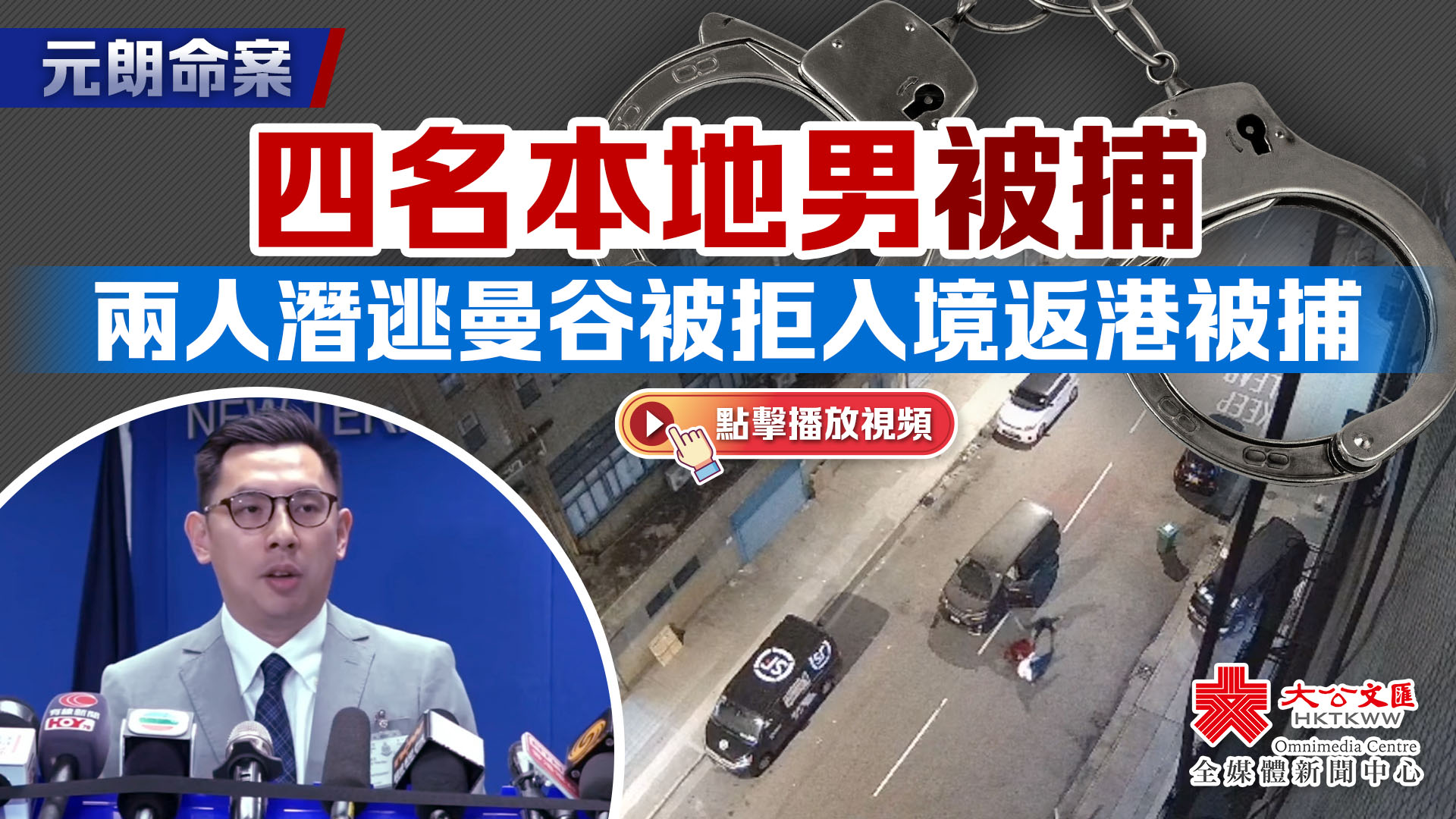 同時,警方亦都掌握另外兩名分別20及21歲兇徒在同日較早時間已經坐飛機前往曼谷,警方立即透過警務協作機制,立刻通報泰國有關當局,其後該兩名男子在昨日抵達曼谷機場後被拒絕入境,並在今日下午乘航機折返香港,警方亦都今日下午大約7點半,在香港國際機場拘捕該兩名男子。