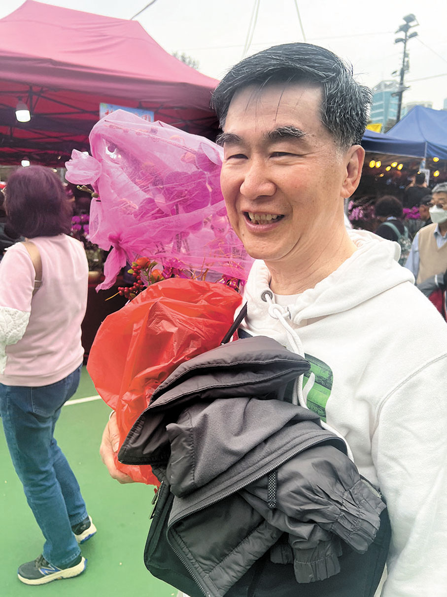 何先生帶着孫兒入場閒逛,他希望政府引入更多類型的攤檔,增添趣味性。 專程來買蘭花的郭先生則表示,貨品價格並非重點,最重要是節日氛圍,「貴平不重要,重要的是年宵的節日氣氛。」
