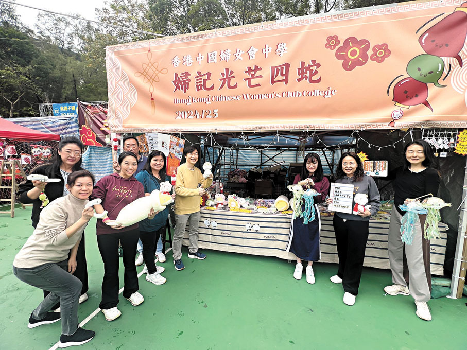 除了各款燦爛盛開的年花,記者還留意到今年出現的兩大元素不相上下,便是「蛇」和「熊貓」。今年是蛇年,自然而然就會有許多以蛇為元素製作的產品,其中多間學校同學仔今年都各出奇招,以蛇年作為主題,親手設計出多款得意蛇公仔及生活雜貨,其中張祝珊英文中學主打「蛇餅」坐墊,並有多種顏色供選擇。有學生表示,希望他們的生意就如這坐墊般,顧客「打蛇餅」、排長隊。現場學生都齊心大叫口號,為商品賣力宣傳,吸引不少年輕人上前了解。