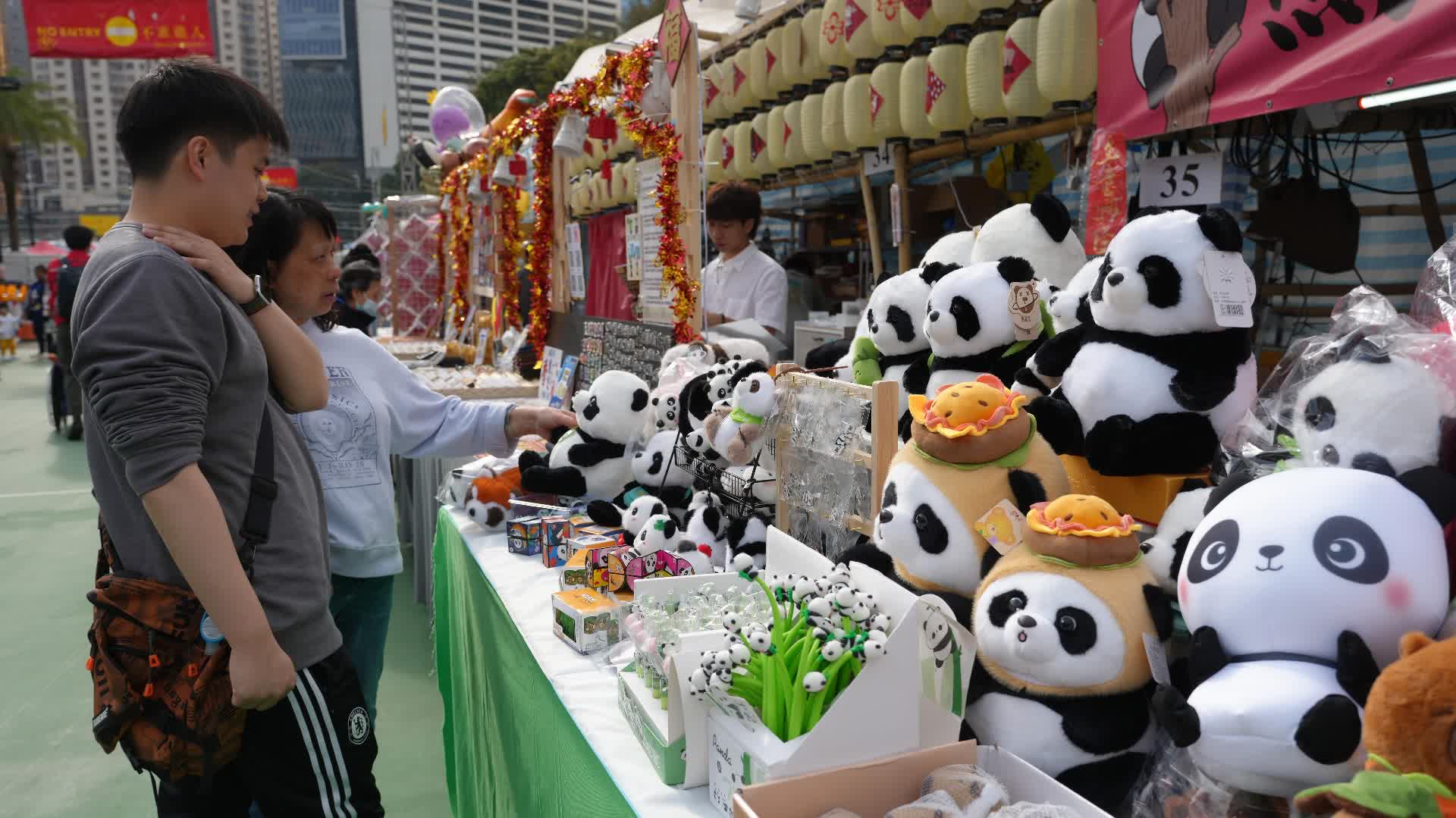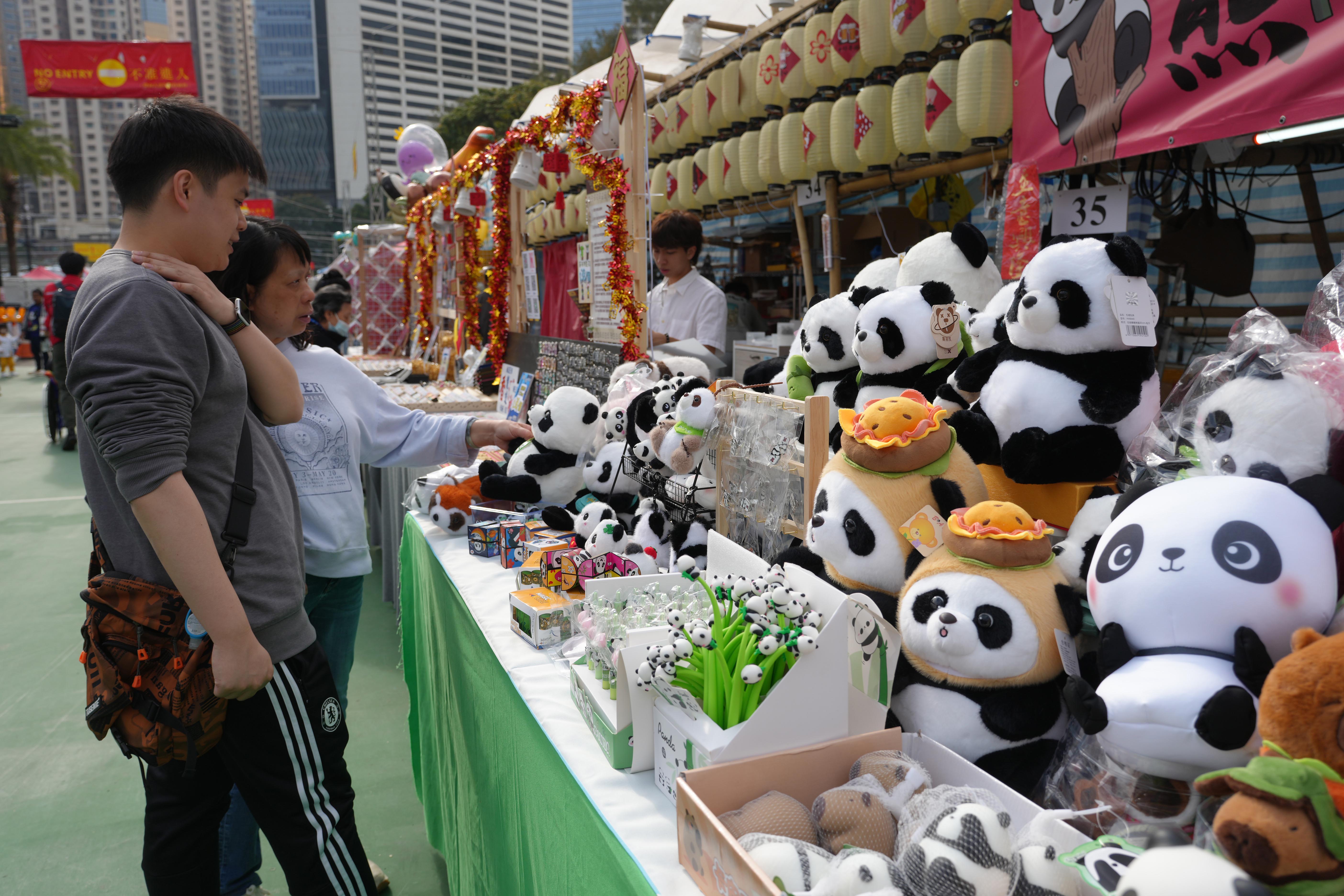 大熊貓熱潮亦成為今年年宵特色,不少商家推出熊貓手環、熊貓原子筆等主題商品,希望以大熊貓的萌憨可愛吸引顧客購買。不少檔戶表示對生意感樂觀,有售賣熊貓產品的商家一早便已賣出近千件產品,形容銷情理想。有熟食檔迎合年輕人口味,推出海膽、蟹子小籠包,預料生意和往年相若。