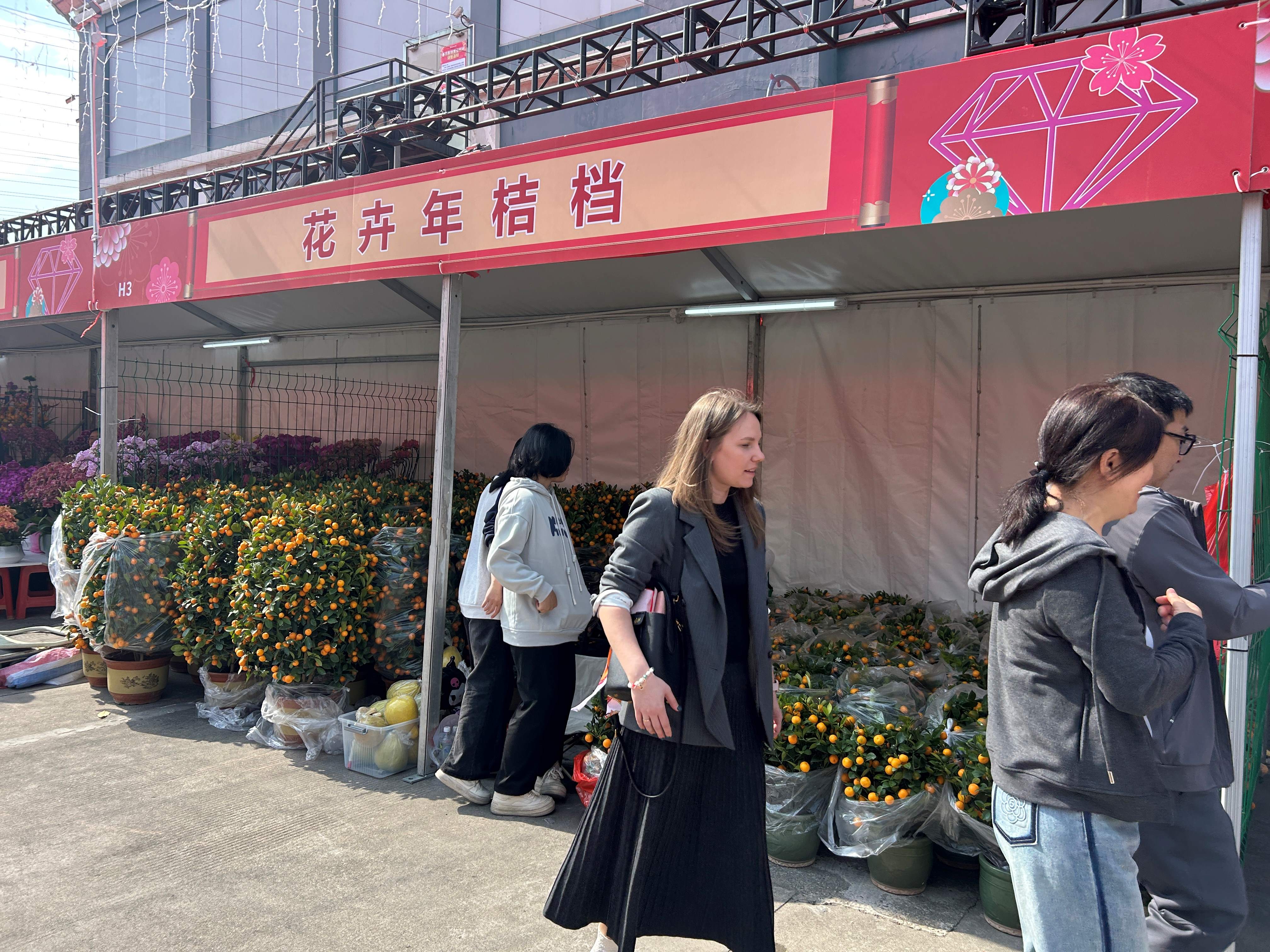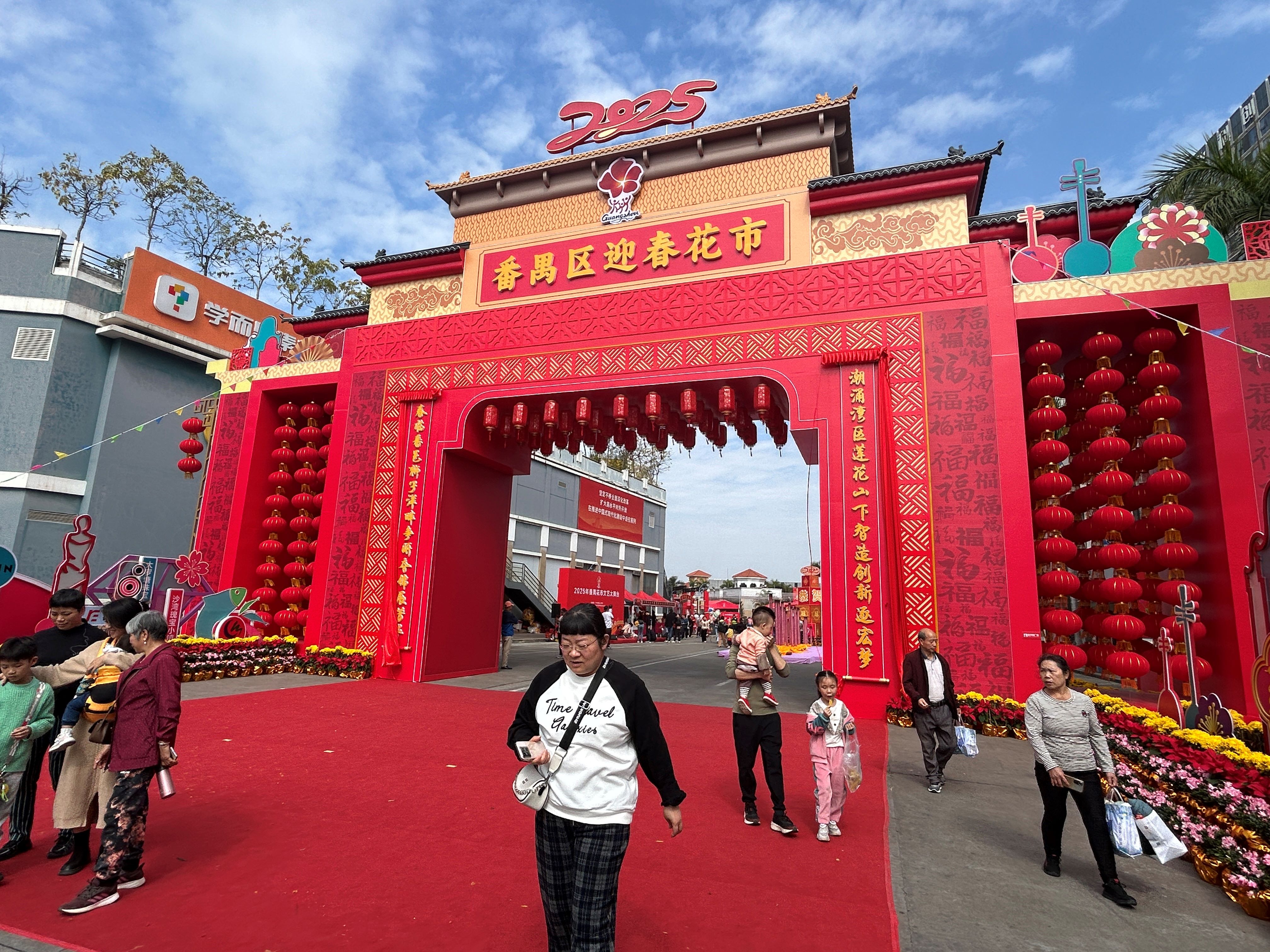 (大公文匯網 記者 敖敏輝)蛇年春節日近,粵港澳大灣區各地的傳統花市陸續啟市。24日,隨着精彩的高樁舞獅表演上演,廣州番禺區迎春花市在南村鎮萬博中心商業街正式開幕。雖然當天是工作日,現場依然人潮湧動。遊客當中,還有不少洋面孔,使得中國傳統花市有了些許「國際範兒」。