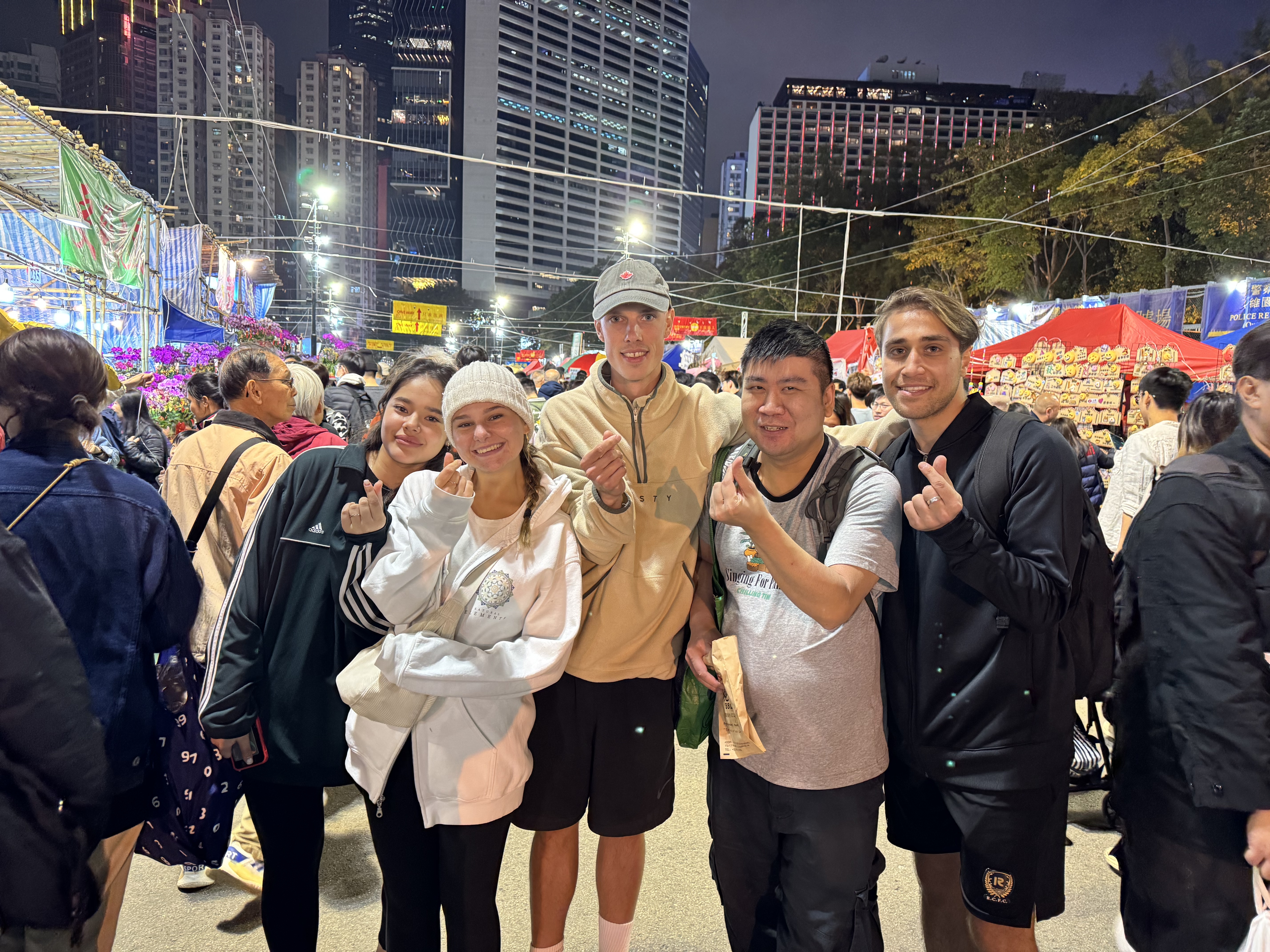 維園年宵市場還能看見外國遊客的身影。市民張先生和他來自俄羅斯和德國的朋友們來到年宵市場,他說他的外國朋友們是來香港旅遊的,他也特地在新年帶他們來參觀這個盛大的中國農曆新年傳統慶祝活動。張先生表示,他向他的朋友們解釋道,可以把年宵市場理解為「Christmas Market」(聖誕集市)。其中,來自俄羅斯的Lisa表示,這裏很漂亮,人們都很開心。最後,他們都表示對市場上的美食更感興趣。