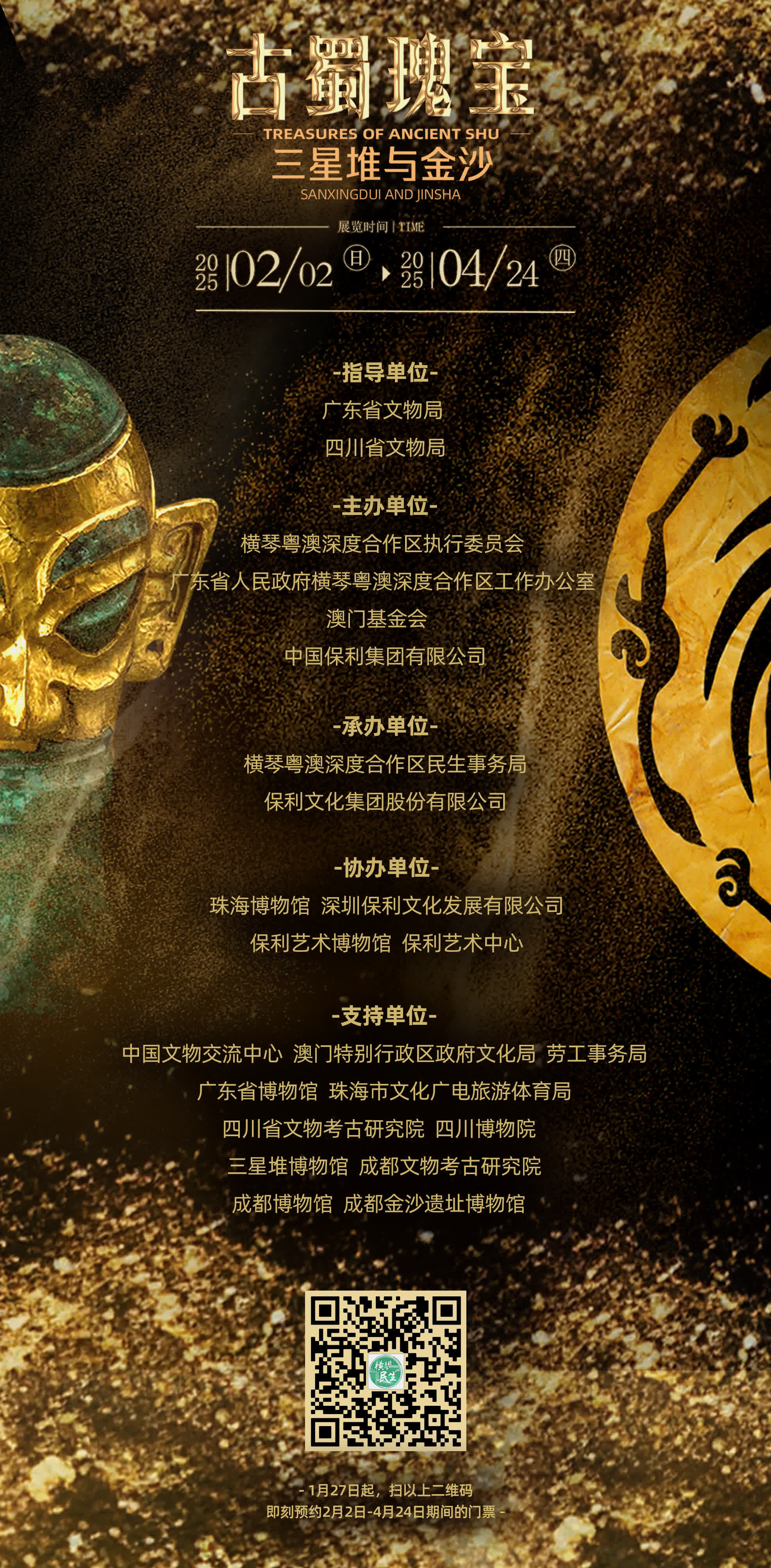 本次展覽由廣東省文物局、四川省文物局指導,橫琴粵澳深度合作區執行委員會、廣東省人民政府橫琴粵澳深度合作區工作辦公室、澳門基金會和中國保利集團共同主辦,橫琴粵澳深度合作區民生事務局、保利文化集團承辦。