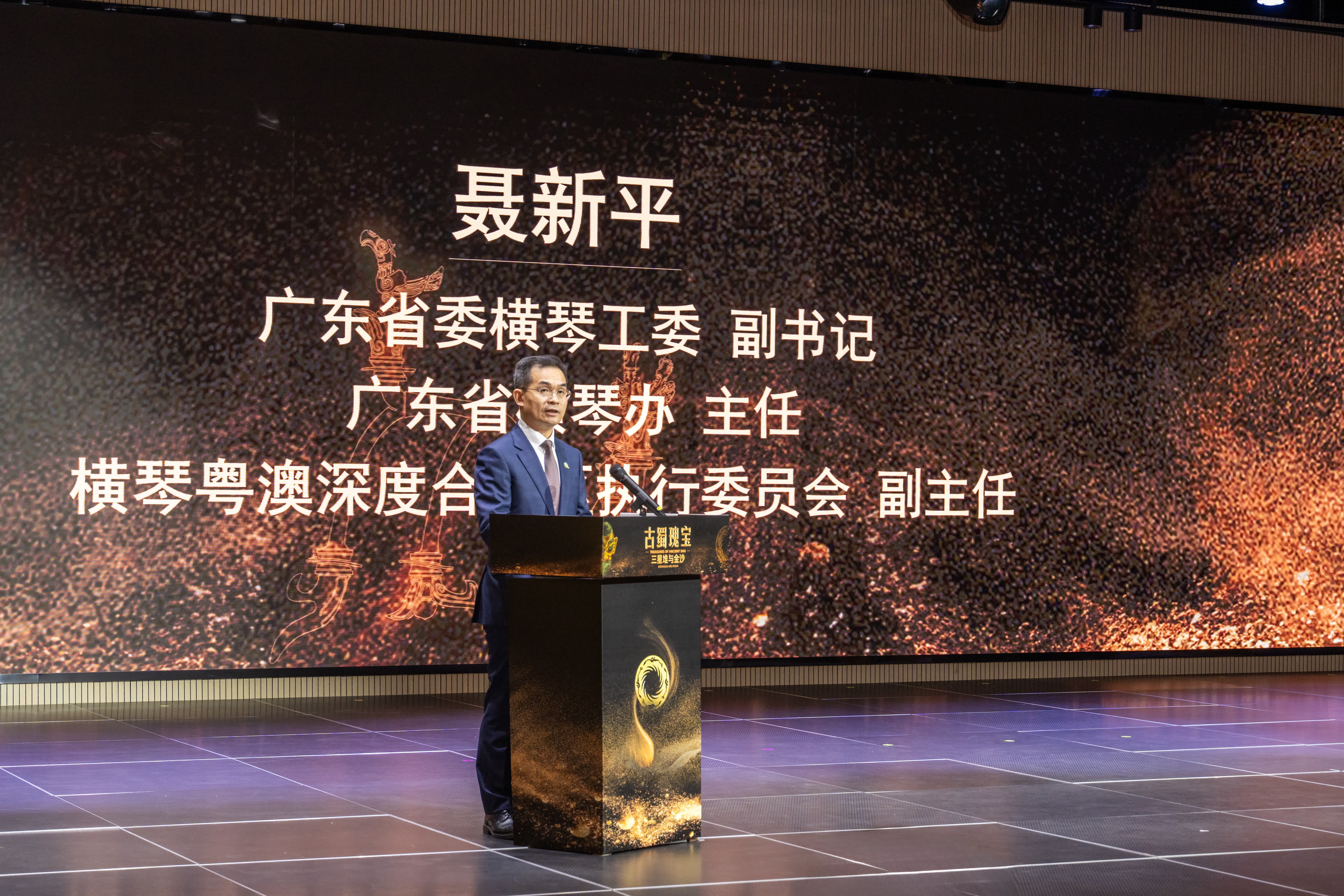 開幕式上,廣東省委橫琴工委副書記、廣東省橫琴辦主任、橫琴粵澳深度合作區執委會副主任聶新平致辭時表示,在澳門回歸祖國25周年之際,習近平總書記再次來到橫琴粵澳深度合作區,強調「澳門+橫琴」正在成為豐富「一國兩制」實踐的新示範、推動粵港澳大灣區建設的新高地、實現國家高水平對外開放的新平台。此次展覽不僅是一場展示古蜀文明魅力的文化盛宴,更是促進「澳門+橫琴」在文化領域深度交流合作的重要舉措。