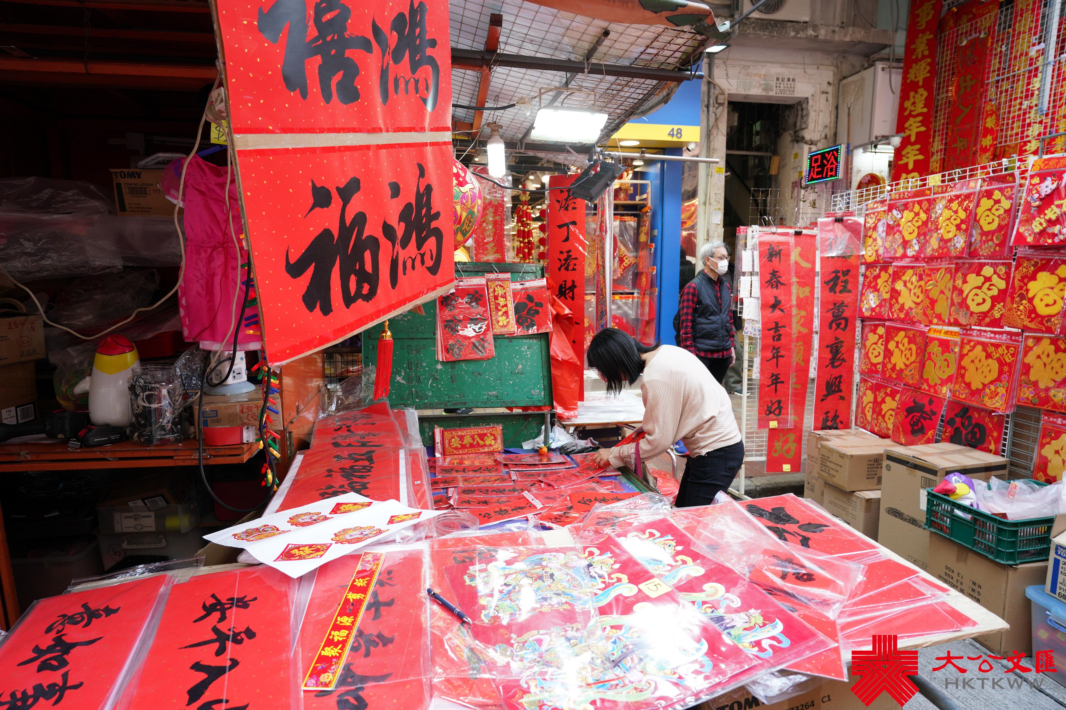 大公文匯全媒體報道,春節申遺成功的消息,讓似乎變淡的「年味」重回視野。現代的香港是一個讓傳統文化不斷被消解的熔爐,不過還算幸運,這片土地的某些角落還有很多人,堅守着傳統文化與兒時記憶。走進深水埗、元朗等地,彷彿踏入一條時光迴廊,家家要貼的揮春、新年裝飾隨處可見,整個街區充斥洋洋喜氣。