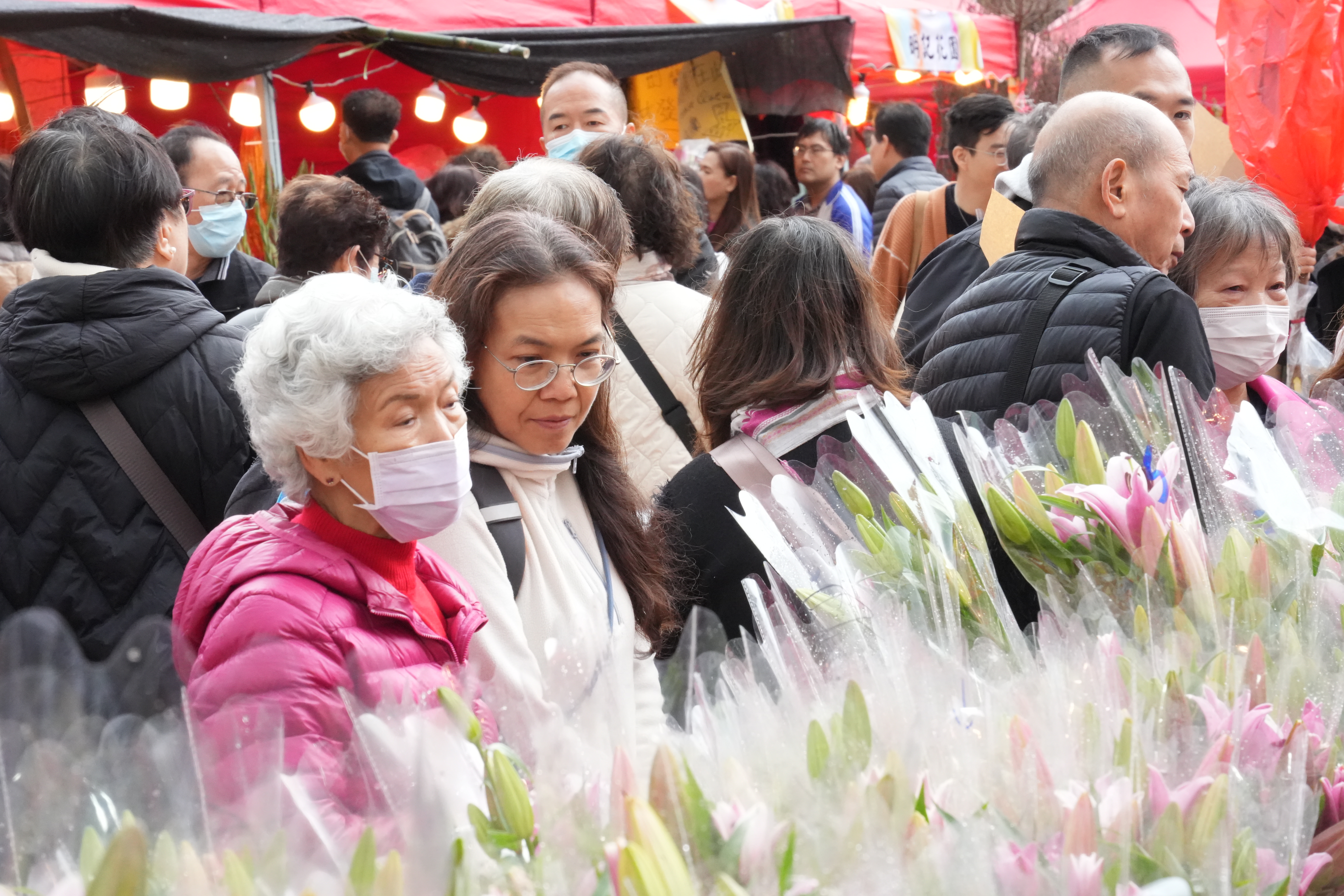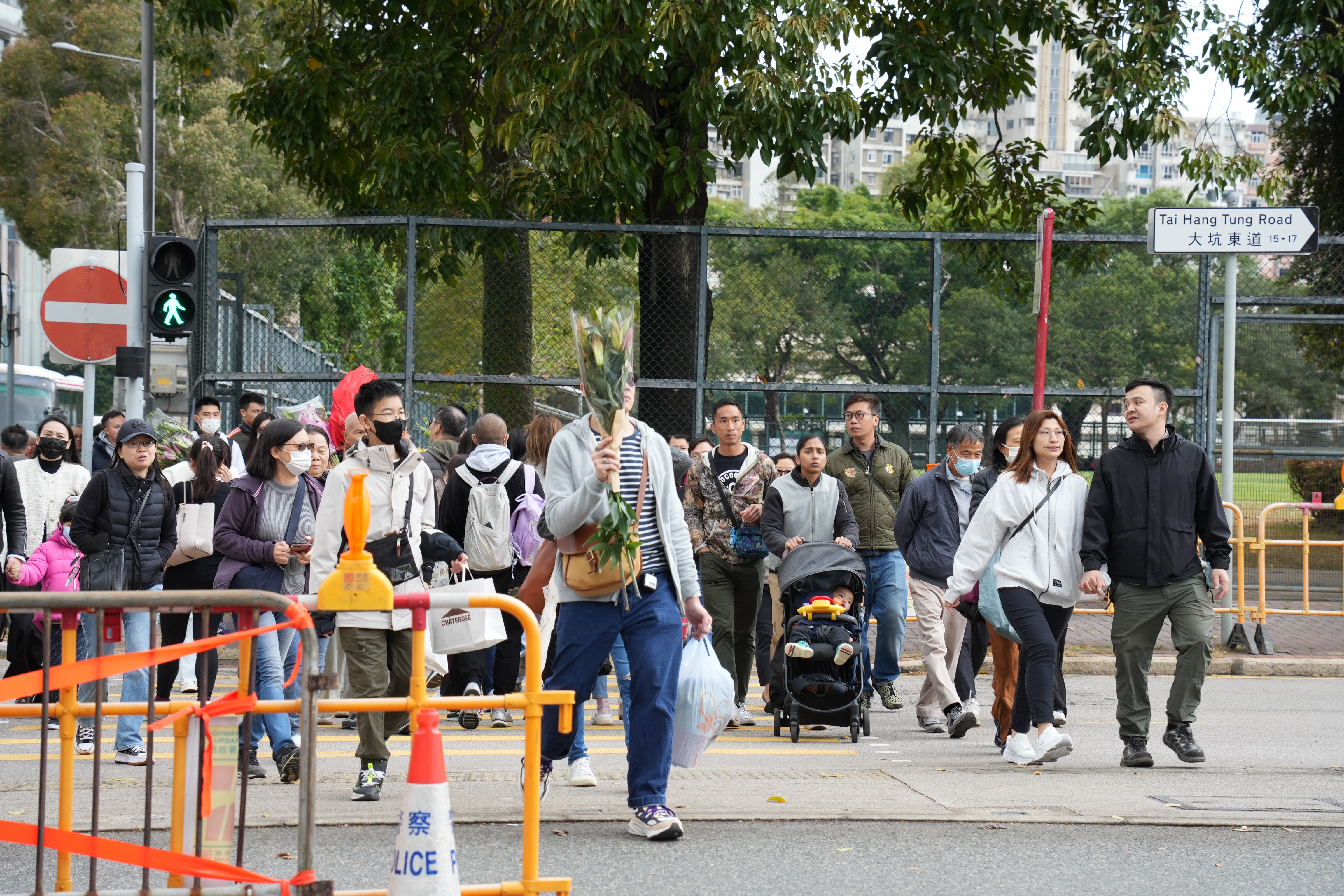 雖然花市人頭湧湧,但到場市民均按照警方指示前進,未見有混亂情況。警方已在旺角花墟一帶實施人流管制措施,包括花墟道、園藝街、園圃街等街道已經封閉。有食環署職員提醒花店員工,清走雜物,避免阻塞行人通道,亦有醫療輔助隊人員到場戒備,應對突發情況。記者訪問多名市民,普遍希望留港消費,支持本地經濟。