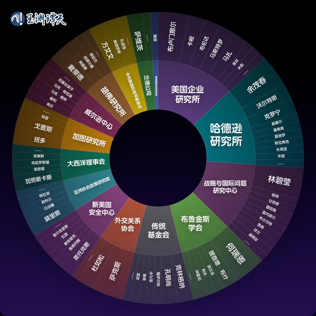 再回到這張流程圖,觀察這些暗線的起點,是美國智庫。
