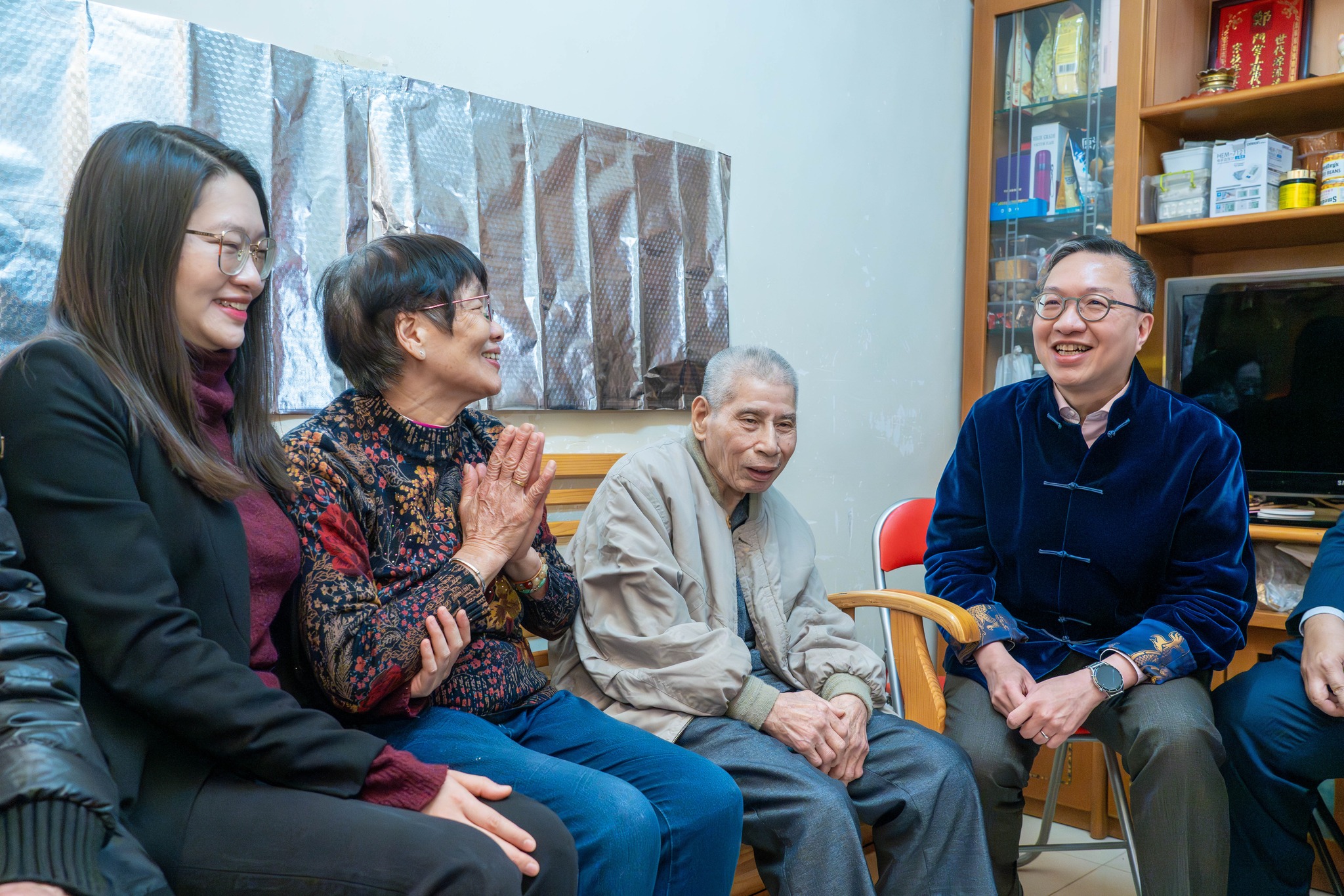 大公文匯全媒體報道,農曆新年將至,不少特區政府官員落區同地區關愛隊探訪長者,並送上節日祝福。律政司司長林定國今早(27日)到堅尼地城,與中西區民政事務專員、區議員及關愛隊隊員共同探訪區內長者。