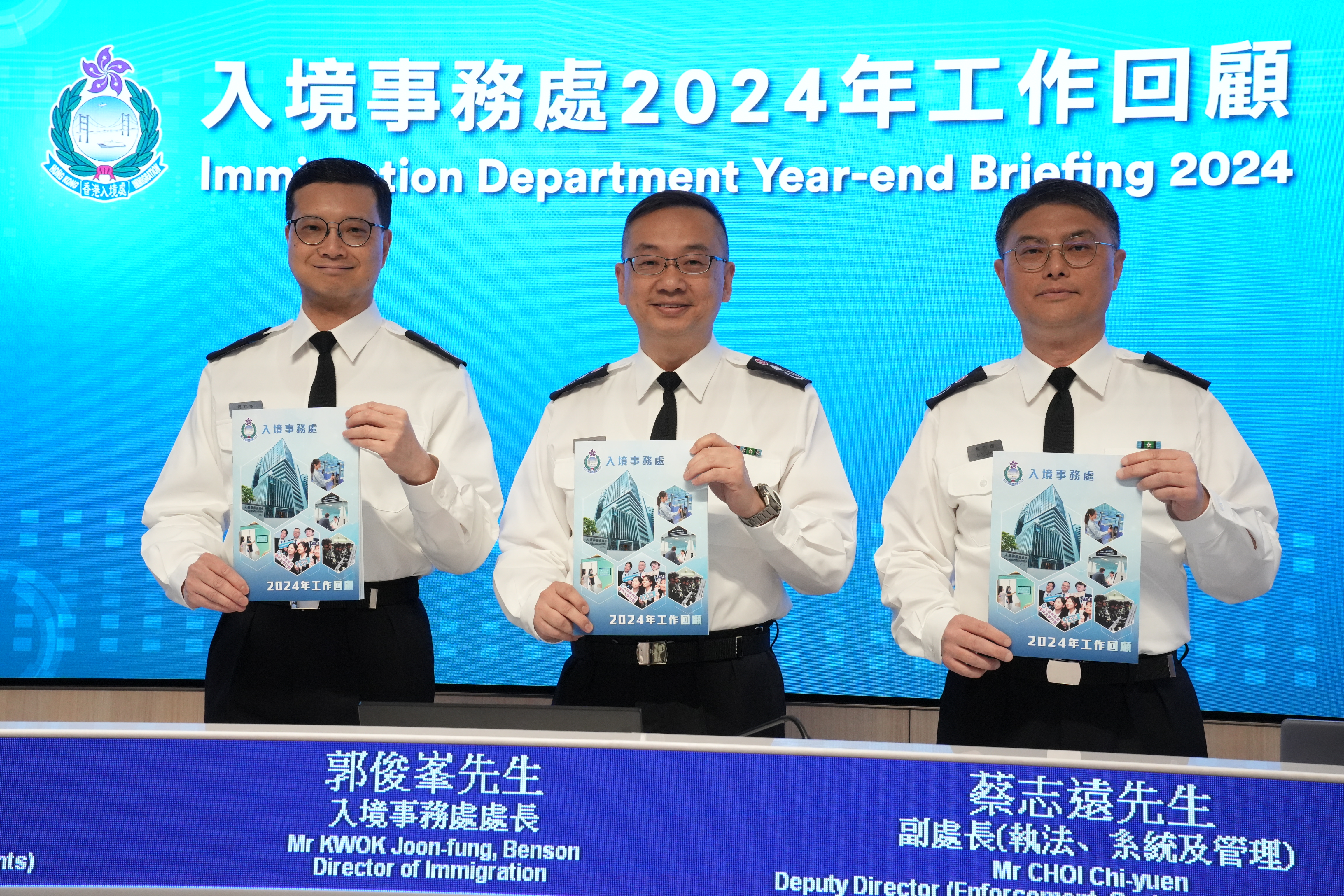大公文匯全媒體報道,入境事務處(入境處)處長郭俊峯今日(27日)下午主持新聞發布會,回顧2024年入境處的工作。郭俊峯表示,去年旅客流量已回復至疫前水平,全年總出入境達2.98億人次,按年增加四成,與疫情前2019的3億人次相若,其中訪客共4450萬人次,按年增約三成。
