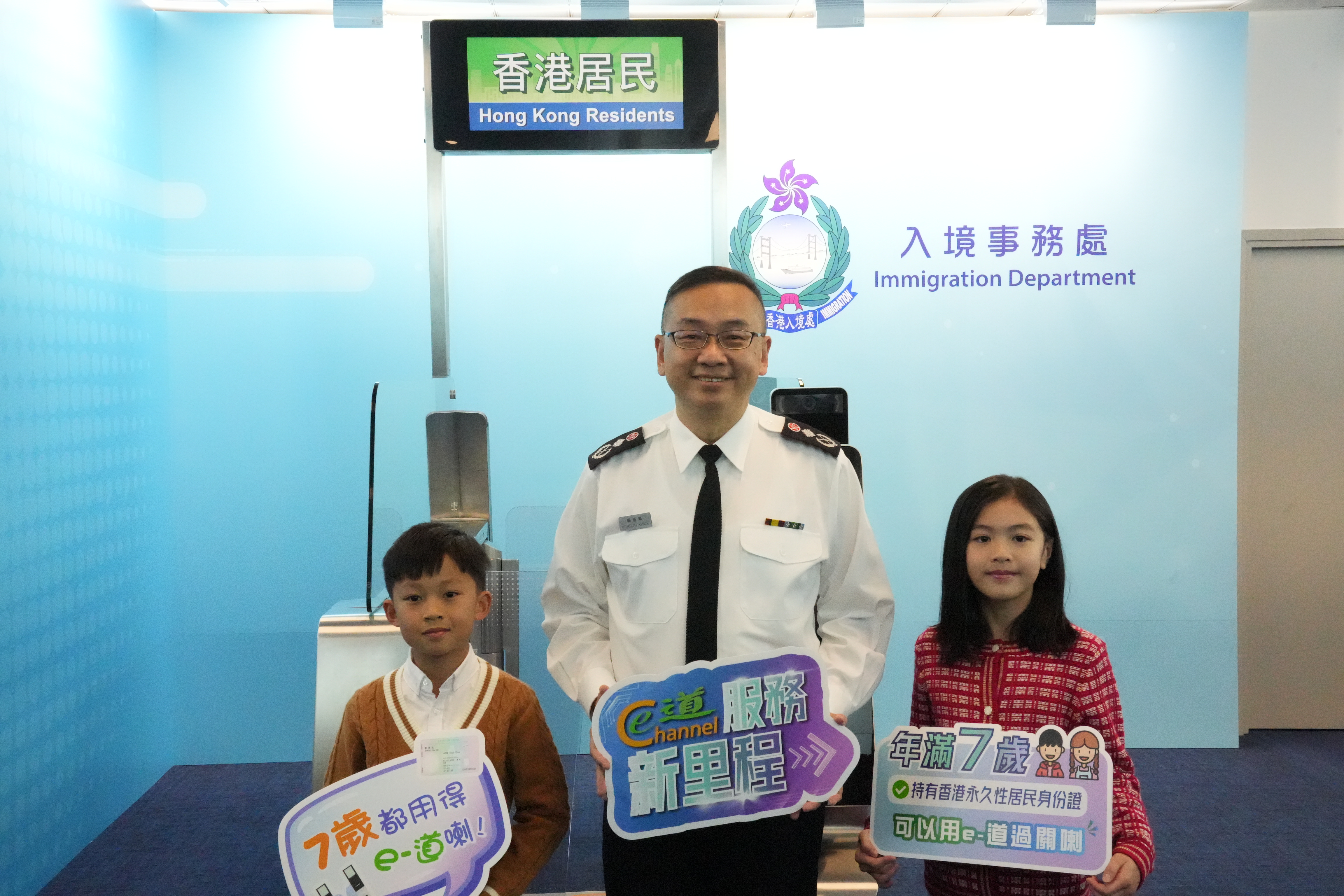 郭俊峯續說,今年第一季會放寬年滿7歲的兒童使用e道服務,年滿7歲、持有有效的特區護照以及香港永久性居民身份證的兒童,就可以使用智能身份證進入e道,預計措施將惠及約20萬名兒童,實施日期稍後公布。