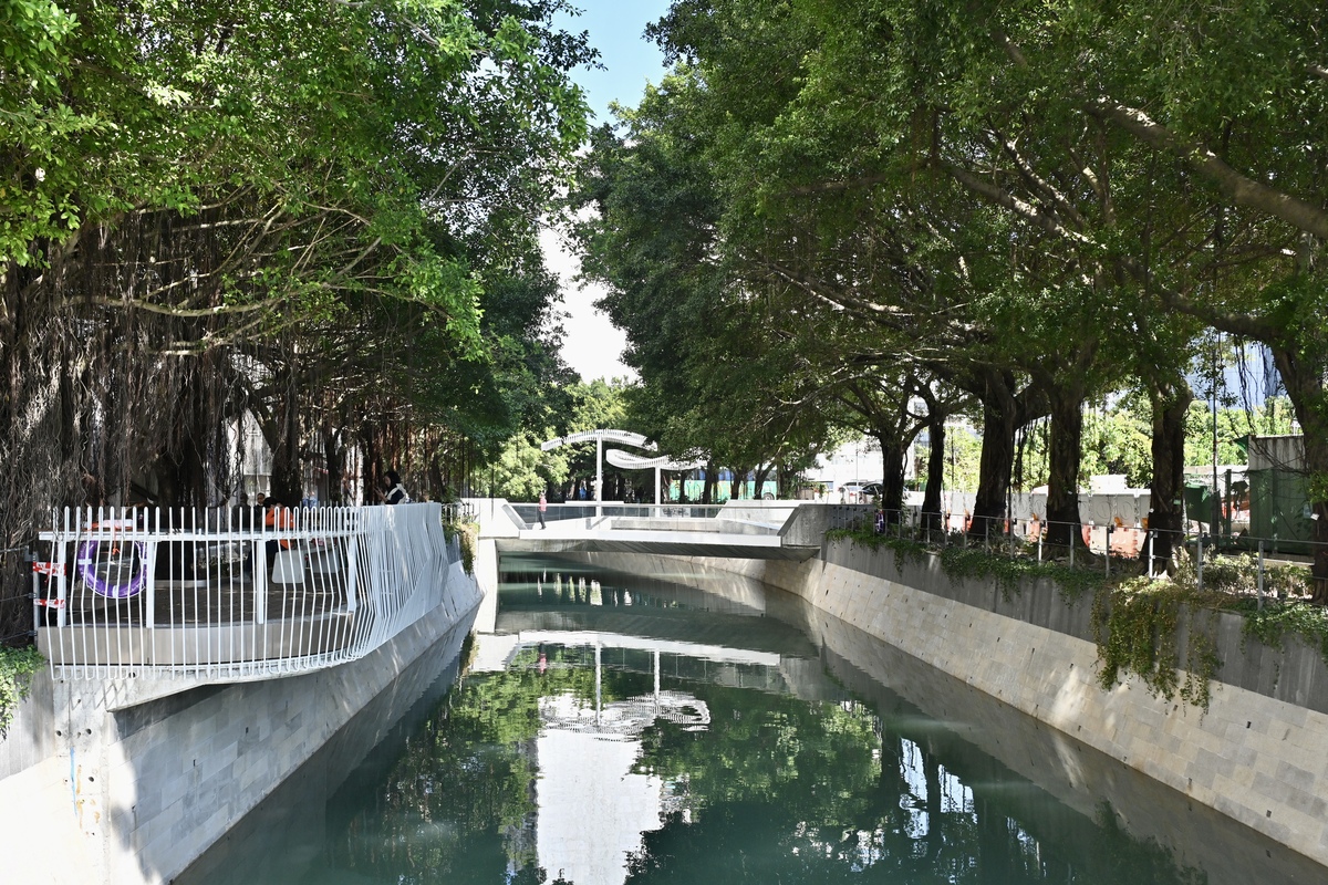 為打造生態保育和實用性俱備的河道環境,渠務署保留河道兩岸超過50棵細葉榕,成為林蔭走廊。