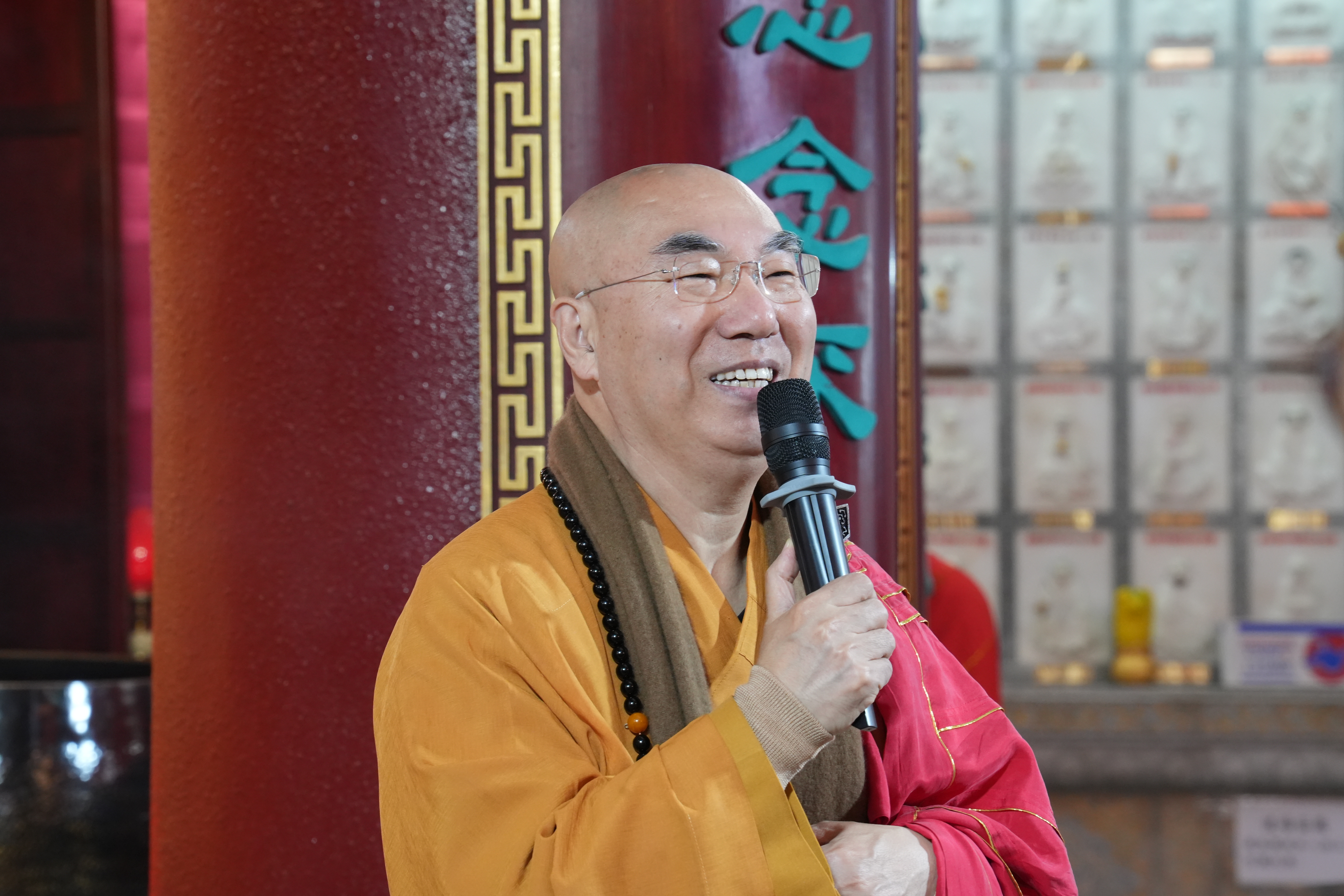 同行分享法會接近尾聲,大年初一零點將至之時,二十多位法師帶領與會三百餘位善信全體一起倒數,寬運大和尚領眾率先叩響「和合鐘」,悠揚的鐘聲在大帽山的山谷中迴盪。寬運大和尚高聲地說:「第一響、辭舊迎新!蛇年吉祥!祝福大家新春行大運!第二響、世界和平!國泰民安!祝福香港繁榮穩定蒸蒸日上!第三響、香港市民,身體健康!家庭幸福!事業順利!福慧增長!」