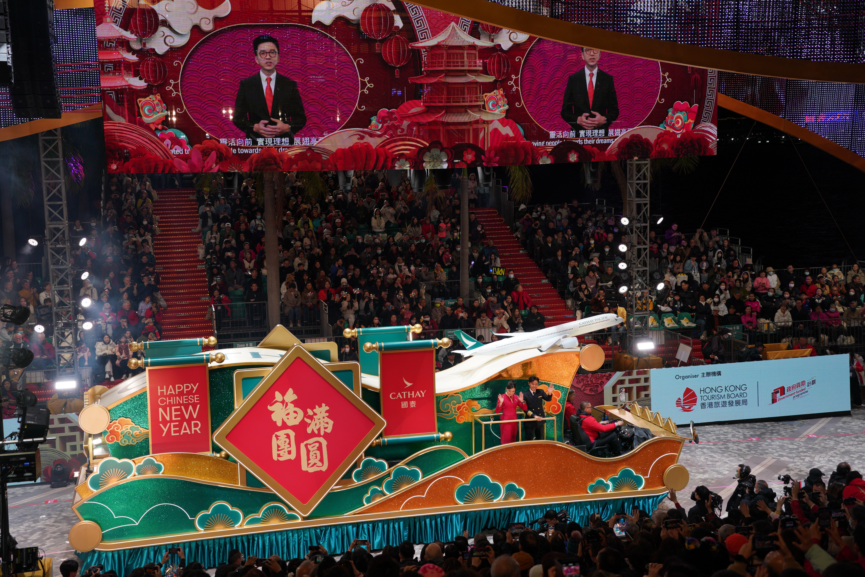 李家超表示,今年匯演主題是「如意新春 喜樂連連」,由9架融入節慶及香港地道元素的特色花車,連同來自香港、內地及世界各地的表演隊伍,一共55個表演團體組成。他指出,有關匯演是香港每年新春期間的首項盛事,展現香港作為盛事之都的澎湃活力。