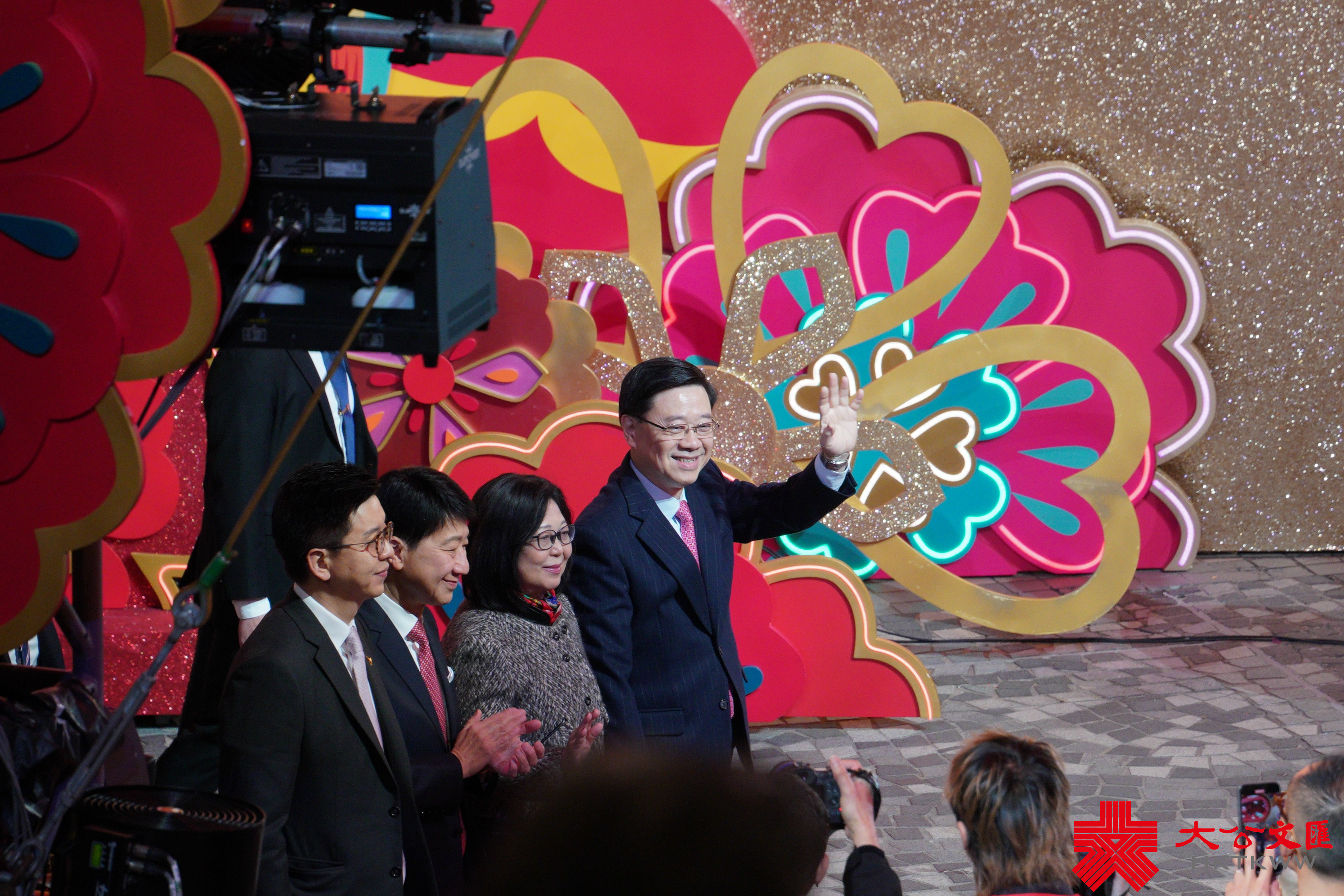 大公文匯全媒體報道,「新春花車巡遊匯演」今晚(29日)8時起在尖沙咀一帶舉行。匯演由勁歌熱舞開場,行政長官李家超出席並致辭。