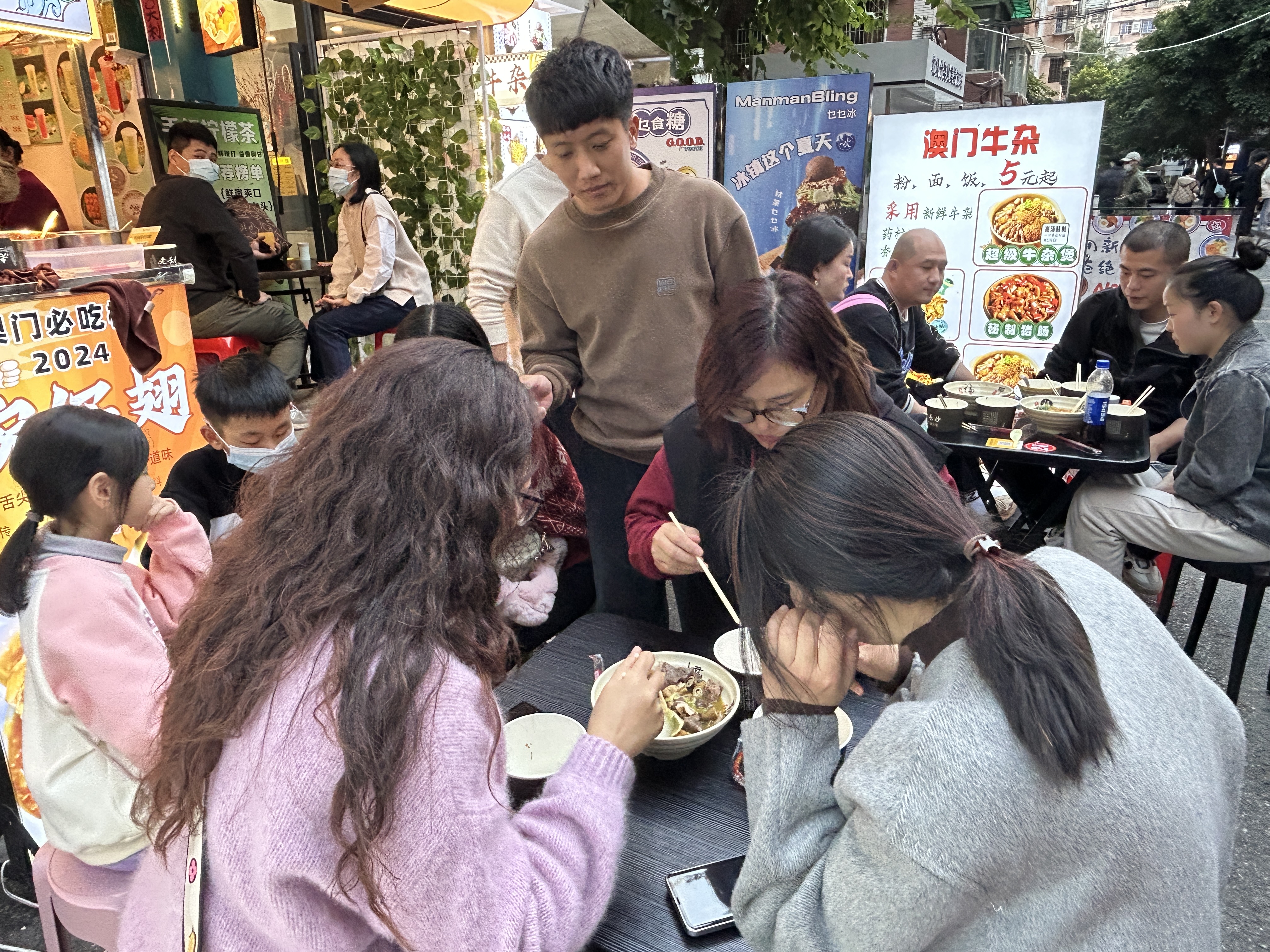 「和去年相比,今年春節的回頭客特別多,很多人是組團過來,甚至有的公司把團建聚餐也放在我們這裏,集體吃牛雜。」林文騰說。