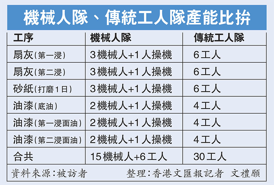 這次技術升級並非小成本的嘗試。趙松波投資了約330萬元引入三部機械人,但由於有政府七成資助,他實際支出約100萬元,「雖然初期投資高,但我們預計兩到三年內可以回本,因為效率提升得太明顯了。」