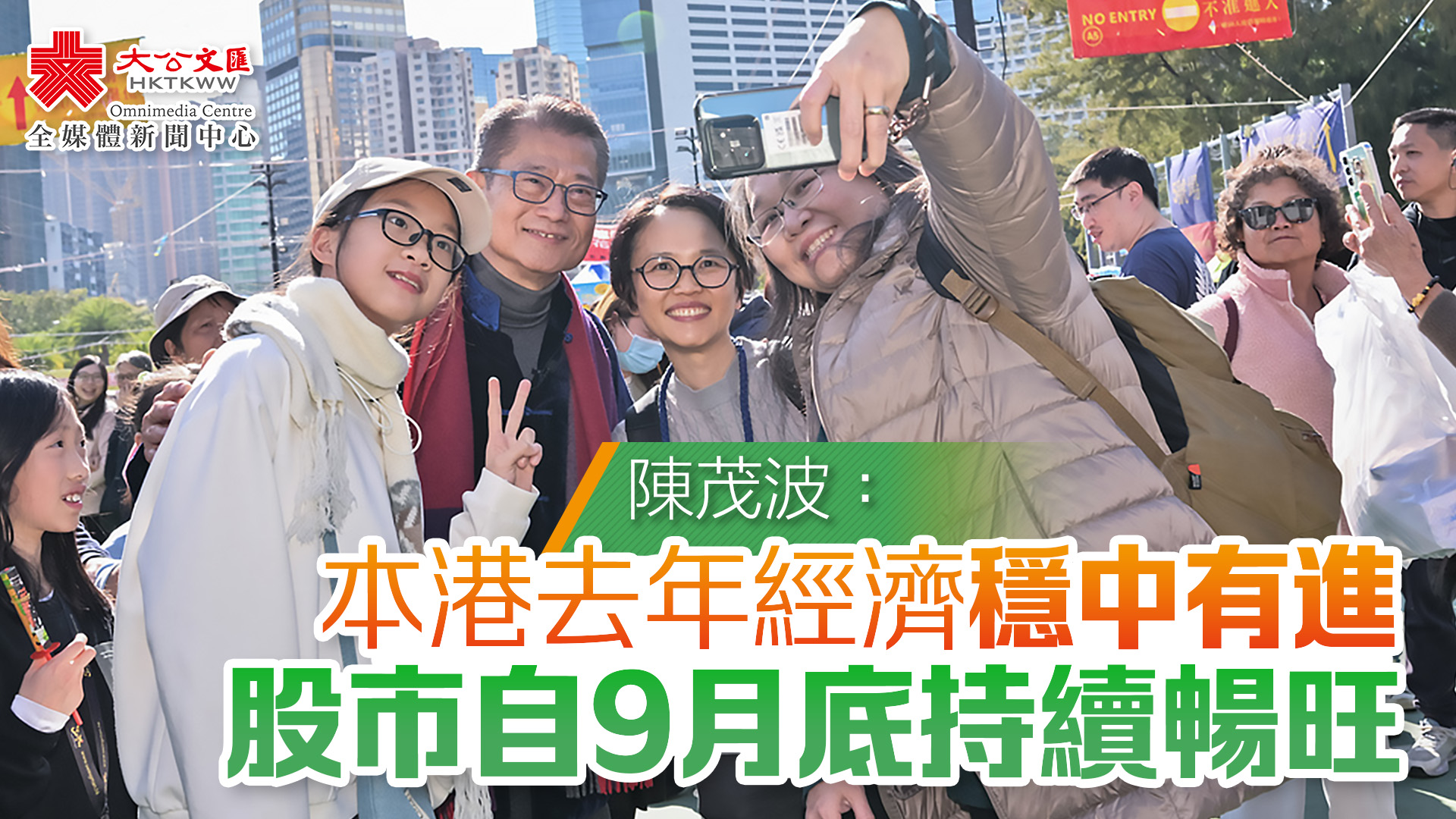 陳茂波說,明天政府將公布2024年第四季及全年經濟預先估計數字,顯示本港經濟處於穩中有進的勢態。其中,旅客人數去年顯著增加,私人消費亦在季內稍為穩定下來。