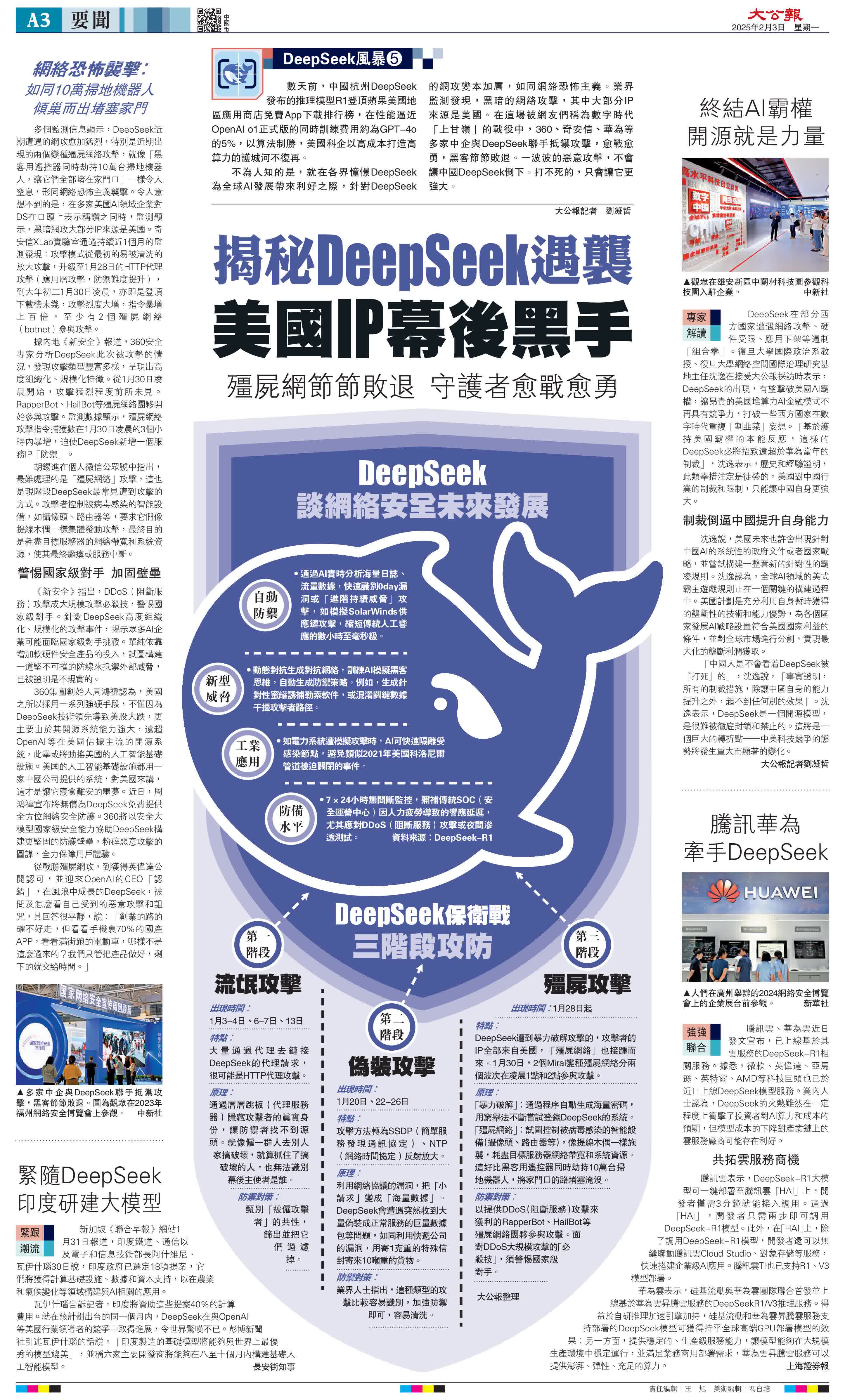 (大公文匯網記者 劉凝哲 北京報道)中國人工智能(AI)初創企業深度求索(DeepSeek,以下簡稱DS)橫空出世,引發全球巨震。復旦大學國際政治系教授、復旦大學網絡空間國際治理研究基地主任沈逸在接受本報採訪時表示,中國DS的出現,有望擊破美國AI霸權,讓昂貴的美國堆算力AI金融模式不再具有競爭力,打破一些西方國家在數字時代重複20世紀50-60年代「中心-外圍」結構中工業製成品-農產品的「剪刀差」、用昂貴複雜的AI系統向全球各國尤其是新興市場和南方國家「割韭菜」的妄想。