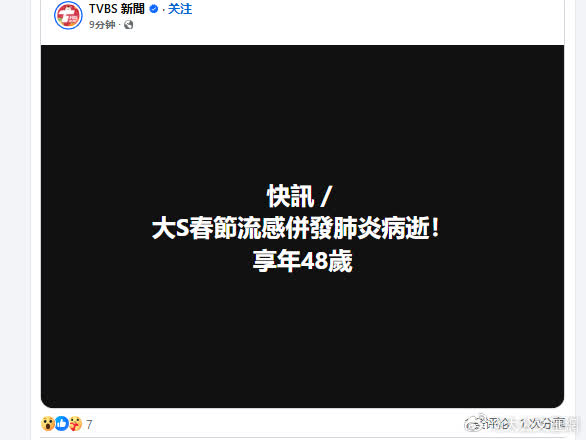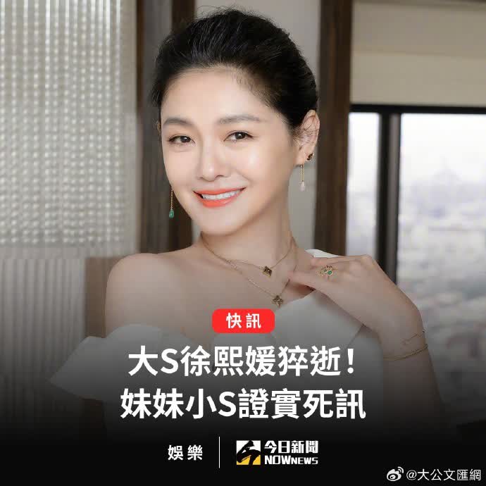 剛剛,多家台媒發布消息,指大S的死訊獲得證實,終年48歲。