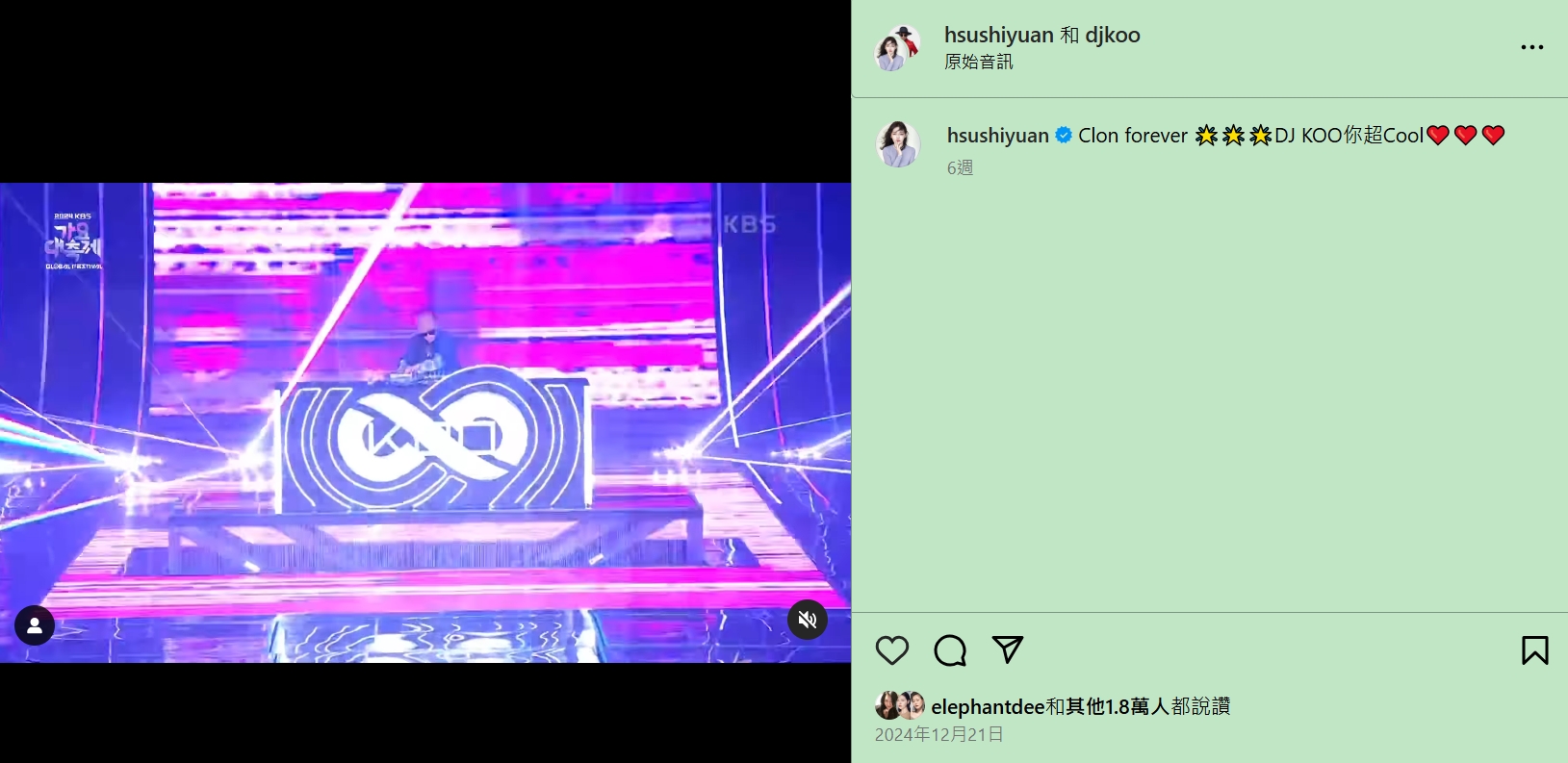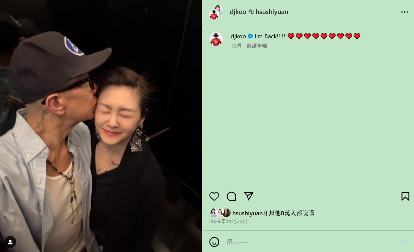 大公文匯全媒體報道,台灣明星大S徐熙媛因流感併發肺炎逝世,享年48歲,妹妹小S痛心證實噩耗,震驚各界。大S的IG最後一則公開發文是去年12月21日,轉發老公具俊曄《KBS歌謠大祝祭》的精彩演出,配文「DJ KOO你超Cool」加上3個愛心符號。再往前一則是老公具俊曄後台親吻她的照片。