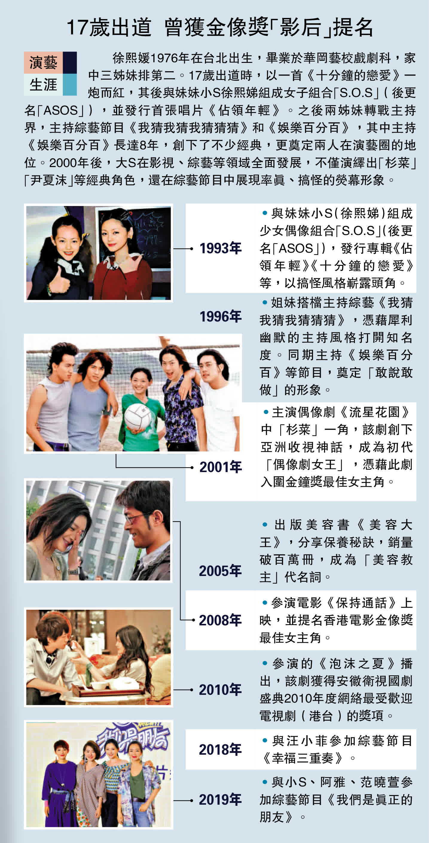 有關大S去世的消息,最早出自社交平台的一個粉絲專頁。專頁2日發文稱「台灣有位大明星過世」,多家台媒推測該藝人或是徐熙媛。3日一早,徐熙媛的妹妹、藝人小S透過經紀人證實了姐姐大S驟逝的消息,她稱「謝謝大家的關心!新年期間,我們全家來日本旅遊,我最親愛善良的姊姊熙媛,因得了流感併發肺炎,不幸地離開了我們。感恩這輩子能成為她的姊妹,彼此照顧、相伴,我會永遠感激她、懷念她!珊~一路好走!永遠愛你together remember forever。」