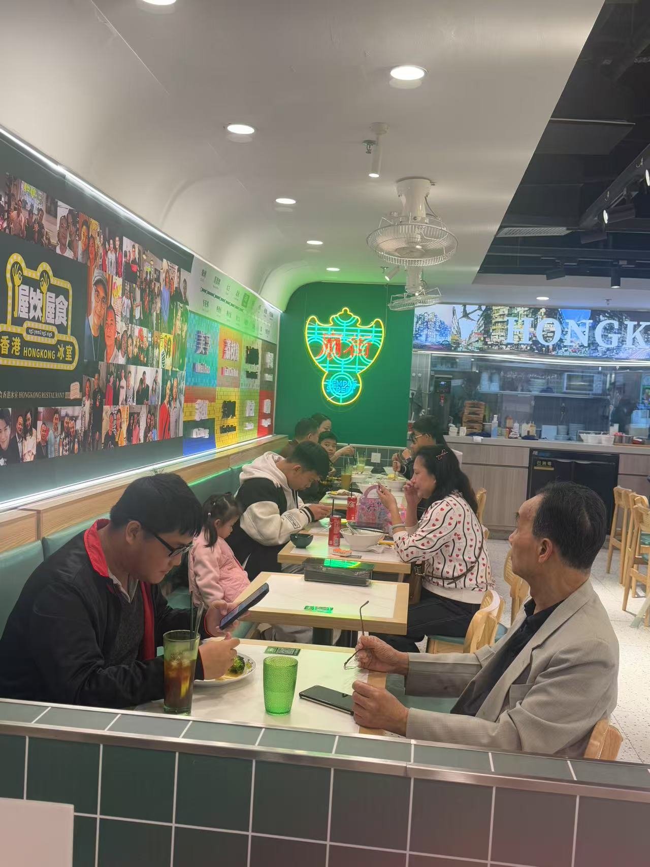 瑞士雞翼、香港魚肉燒賣、咖喱陳皮魚蛋、椰奶紅豆冰……在江門「握飲握食」香港茶餐廳,霓虹燈牌高掛,菜單上的地道港味美食吸引了不少遊客。店內復古的裝潢、牆上的香港元素,彷彿讓人一秒穿越回三十年前的香港。葉漢忠是江門市港飲港食技術有限公司董事總經理,去年首次到江門創業連開兩家茶餐廳,今年春節是他首次與家人一起北上過年,並親自打理餐廳。「年三十我們休息,初一一開門,生意就特別旺,很多市民拜完年出來吃飯,整個商場都是人潮。」
