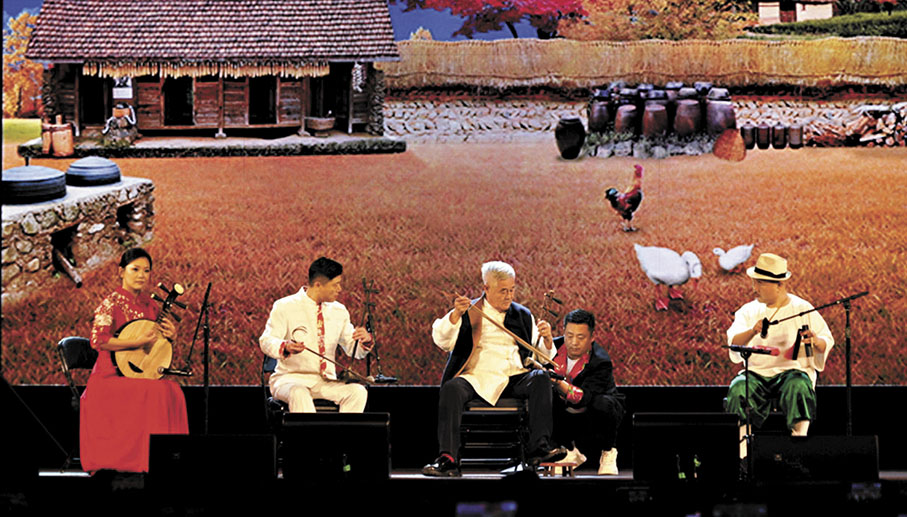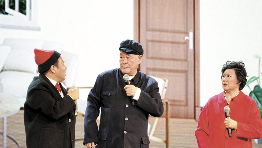 趙本山上場的首個節目是與趙海燕、宋小寶搭檔演小品《排戲》。劇情是:宋小寶飾演的老宋被海燕領到家裏排戲,主要練習擁抱,過程恰好又被趙本山飾演的老趙看到了,老趙成功拿捏老宋,發生了一系列搞笑的故事。趙本山輕鬆地引領觀眾代入小品情境中,雖然他解釋這個小品排練時間短,手持話筒也影響發揮,但還是令觀眾笑得前仰後合。其後,趙本山還表演了京胡獨奏《夜深沉》,與閆學晶搭檔演出二人轉經典曲目《牆裏牆外》,演唱歌曲《孝敬爹和媽》與《咱們屯裏人》,以及即興脫口秀。