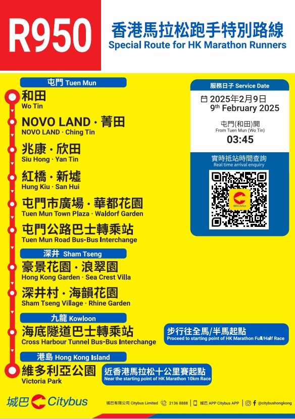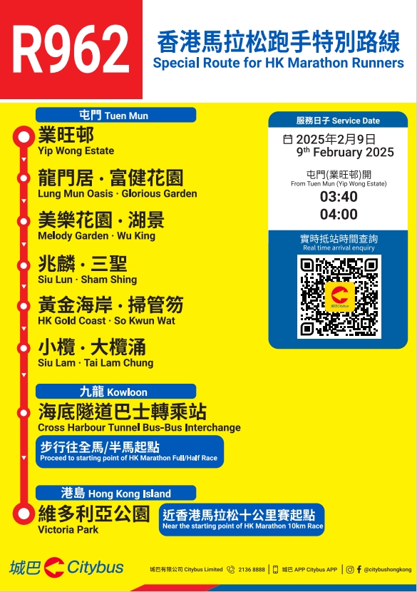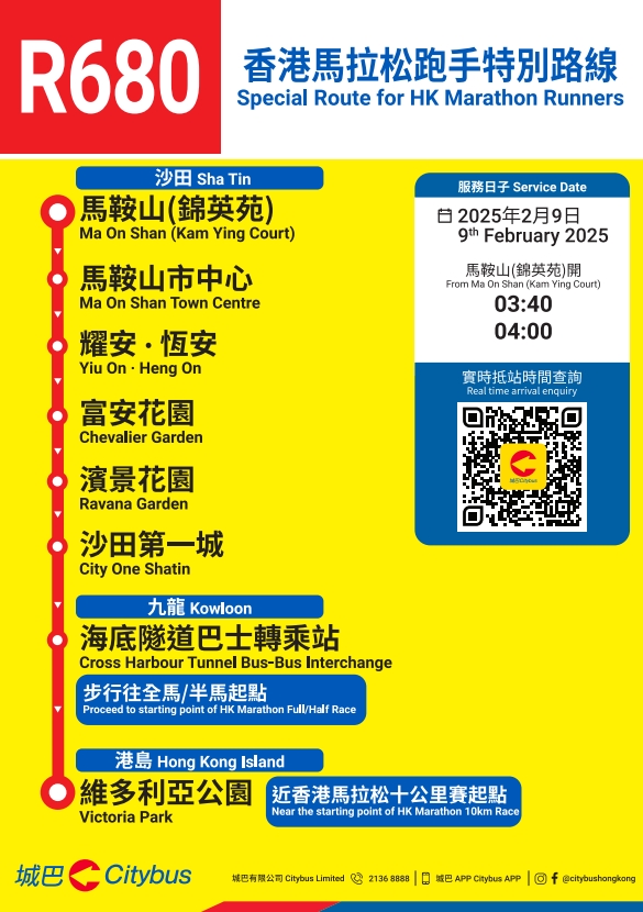 大公文匯全媒體報道,香港體壇年度盛事之一「香港馬拉松2025」本周日(9日)開跑,城巴今年繼續擔當眾多跑手最強後盾,各條特別路線會於2月9日在各區出發,直達銅鑼灣及尖沙咀的起步點,期望眾多健兒在舒適、便捷的旅程後能在賽道上「秒速只許加」,衝破界限。