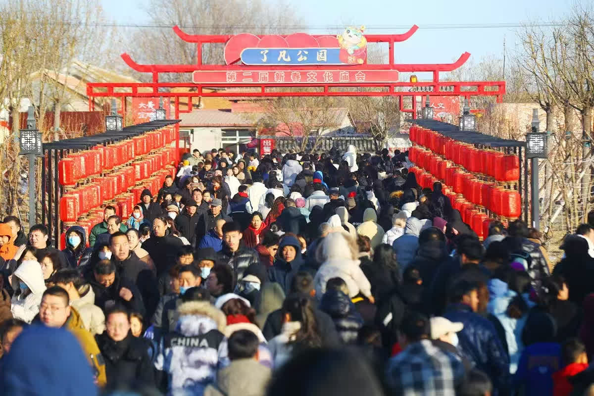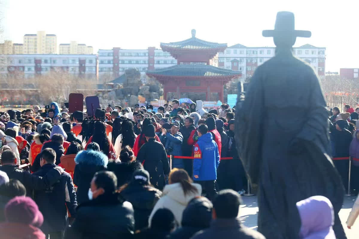 蛇年春節,在天津寶坻區,第二屆了凡公園新春文化廟會再度火爆出圈。