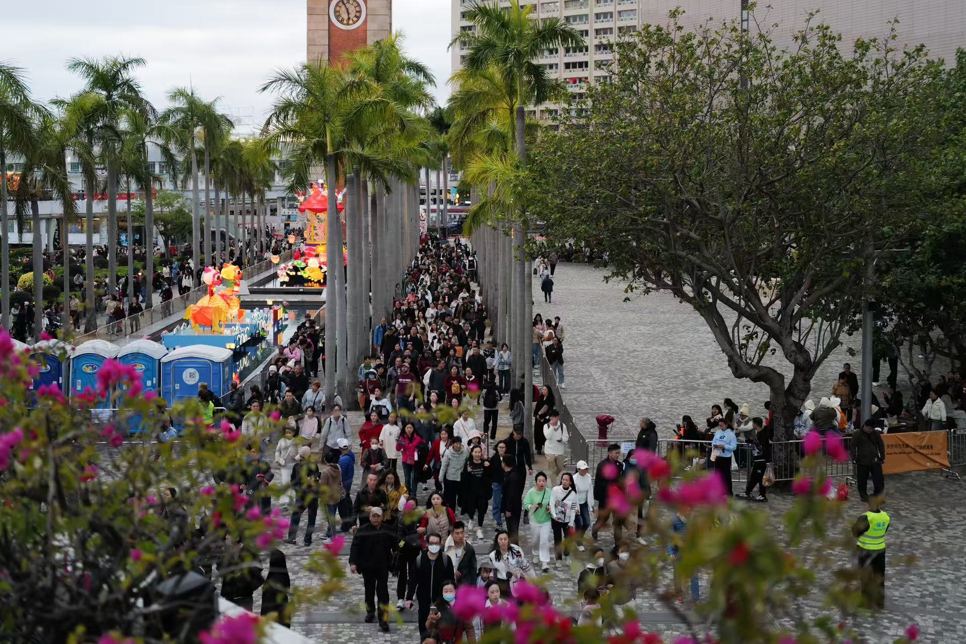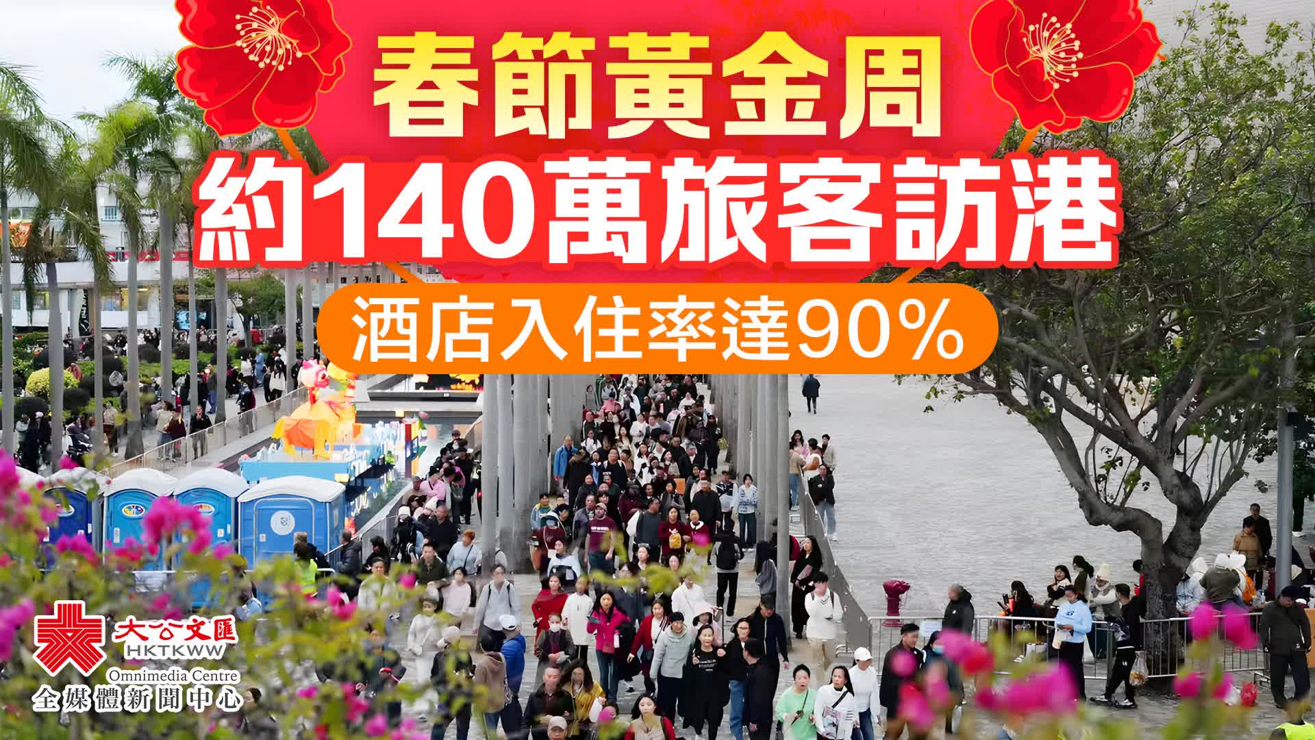 春節黃金周期間的訪港旅客遍布香港不同景點,主要旅遊景點包括西九文化區、海洋公園、香港迪士尼樂園、山頂纜車及昂坪360纜車等人流暢旺,人流管理工作順利。另外,根據酒店業提供的資料,黃金周期間酒店入住率普遍達到90%。