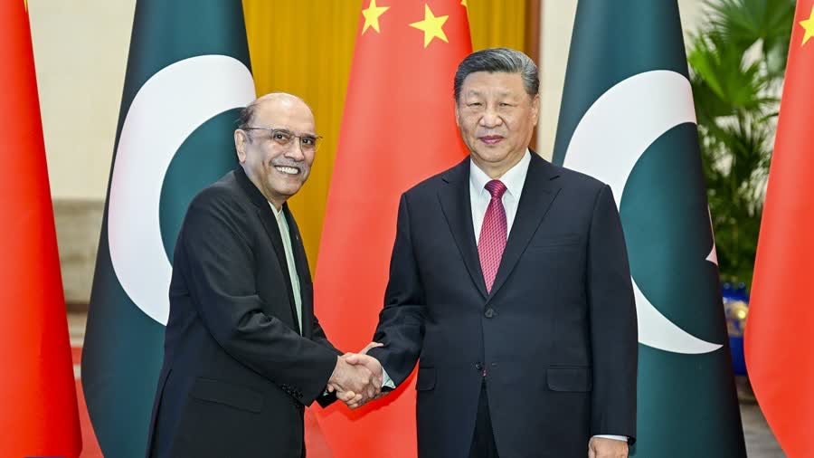 習近平指出,中國和巴基斯坦是鐵杆朋友和全天候戰略合作夥伴。歷久彌堅的中巴傳統友誼由兩國老一輩領導人親手締造,是兩國和兩國人民的寶貴財富。近年來,雙方堅定相互政治支持,保持密切高層交往,深入推進中巴經濟走廊建設和各領域合作,樹立了國與國關係典範。中方願同巴方在各自現代化道路上攜手前行,加快構建新時代更加緊密的中巴命運共同體,更好造福兩國人民,為地區和平、穩定、繁榮作出更大貢獻。