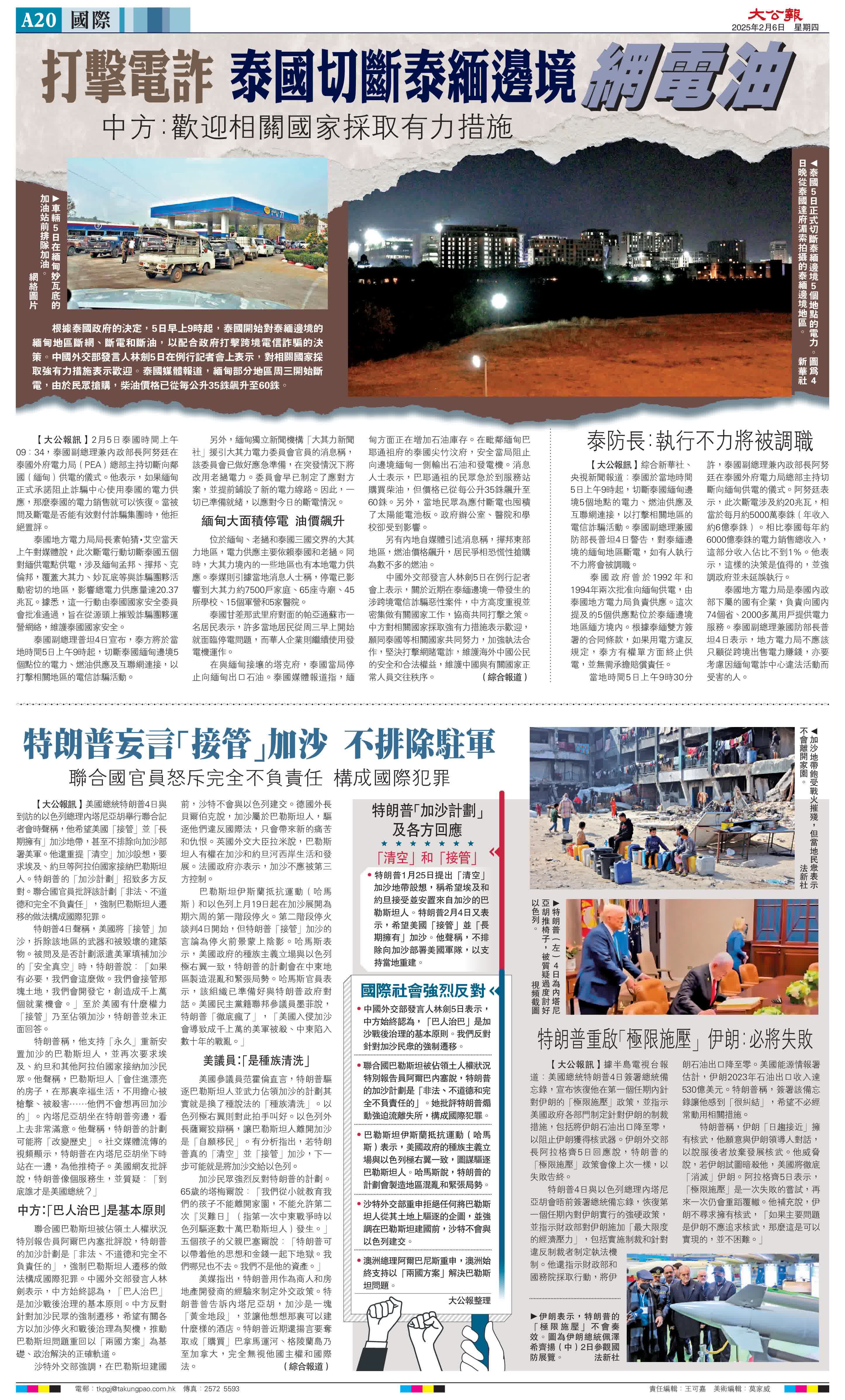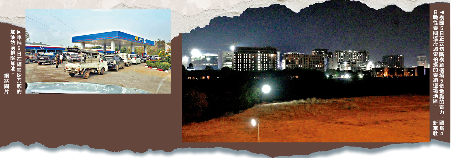 大公報綜合報道,根據泰國政府的決定,5日早上9時起,泰國開始對泰緬邊境的緬甸地區斷網、斷電和斷油,以配合政府打擊跨境電信詐騙的決策。中國外交部發言人林劍5日在例行記者會上表示,對相關國家採取強有力措施表示歡迎。泰國媒體報道,緬甸部分地區周三開始斷電,由於民眾搶購,柴油價格已從每公升35銖飆升至60銖。