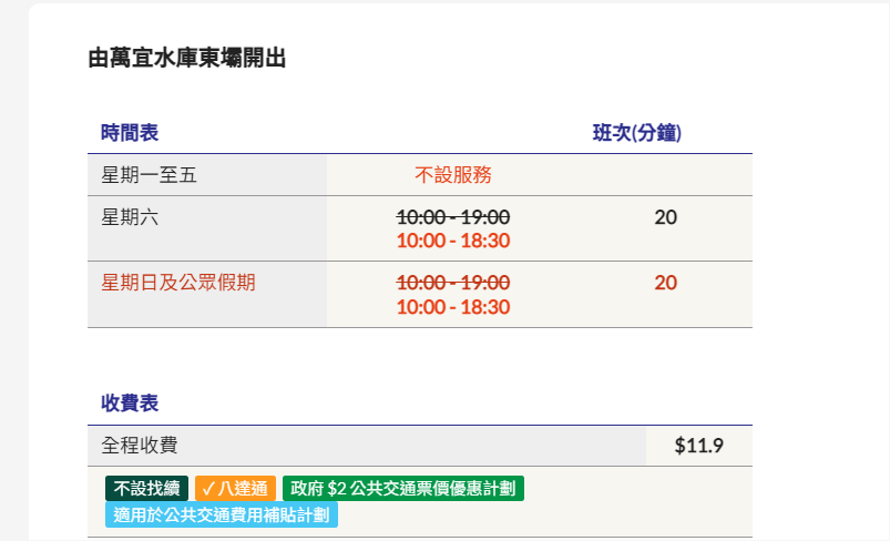 據公開資料顯示,目前出入東壩只有專線小巴9A號線,且僅在星期六、日及公眾假期運行,20分鐘一班車,每班載客約19人,而由東壩開出的尾班車為傍晚6時30分至7時。而不少遊客結束行程的時間一般為下午4時左右,據網友分享,很多人順利坐上小巴需要等3班車左右,有時最長需要等待2個小時。單單等車便需要這麼久,更不必說遊玩逾時、遇到突發狀況耽誤時間等情況,令不少遊客產生錯過末班車、無法順利返程的擔憂。