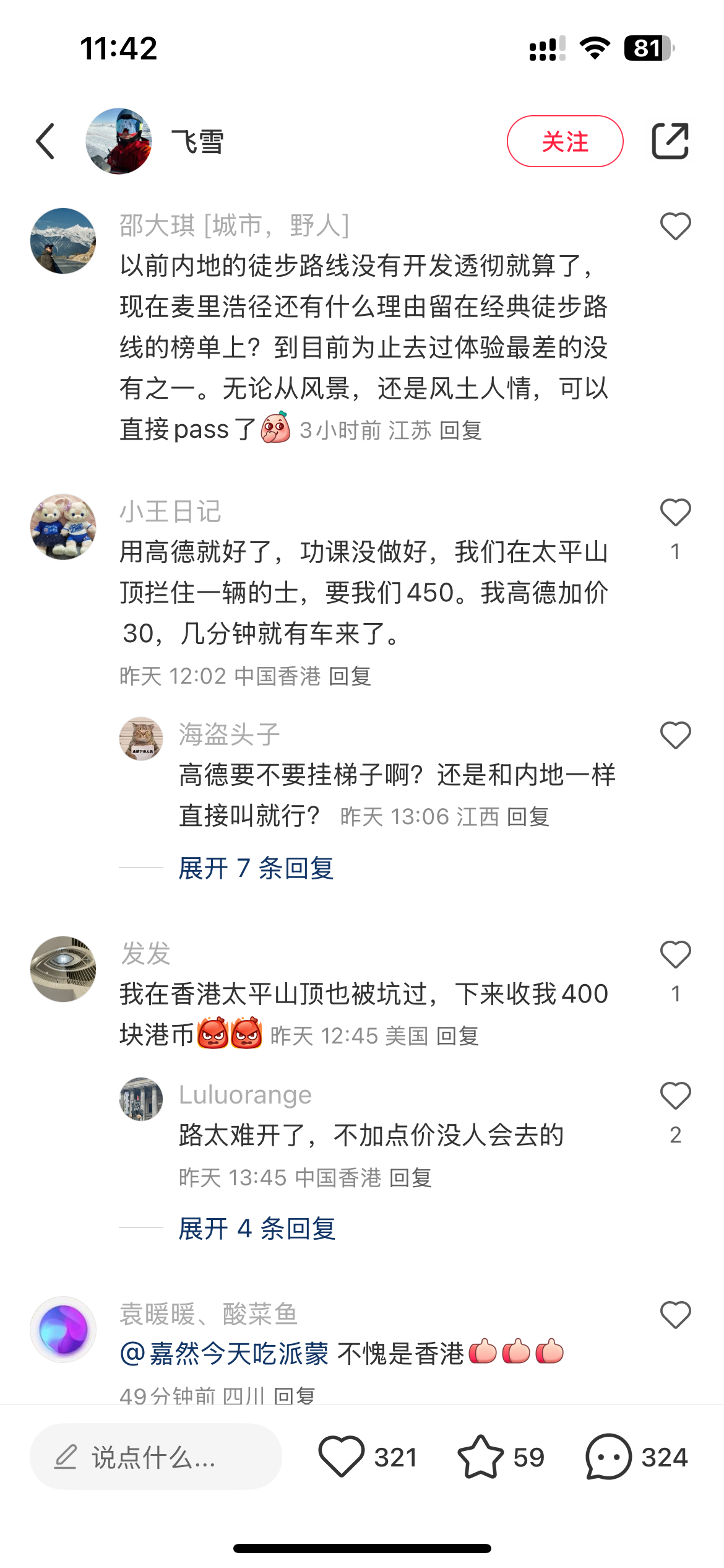 近日有網友於小紅書分享,稱自己去麥理浩徑徒步,一路風景優美、旅途愉快,惟下午徒步結束返程時遇到「黑的」坐地起價。網友稱,當日下午4時左右,他們一行人徒步結束,在萬宜水庫東壩排隊準備打車回去。下午4點、5點左右是遊客返程高峰,前方隊伍已經已有幾十人,不少的士「趁此良機」肆意加價,其中一輛的士司機更是額外加收300元。