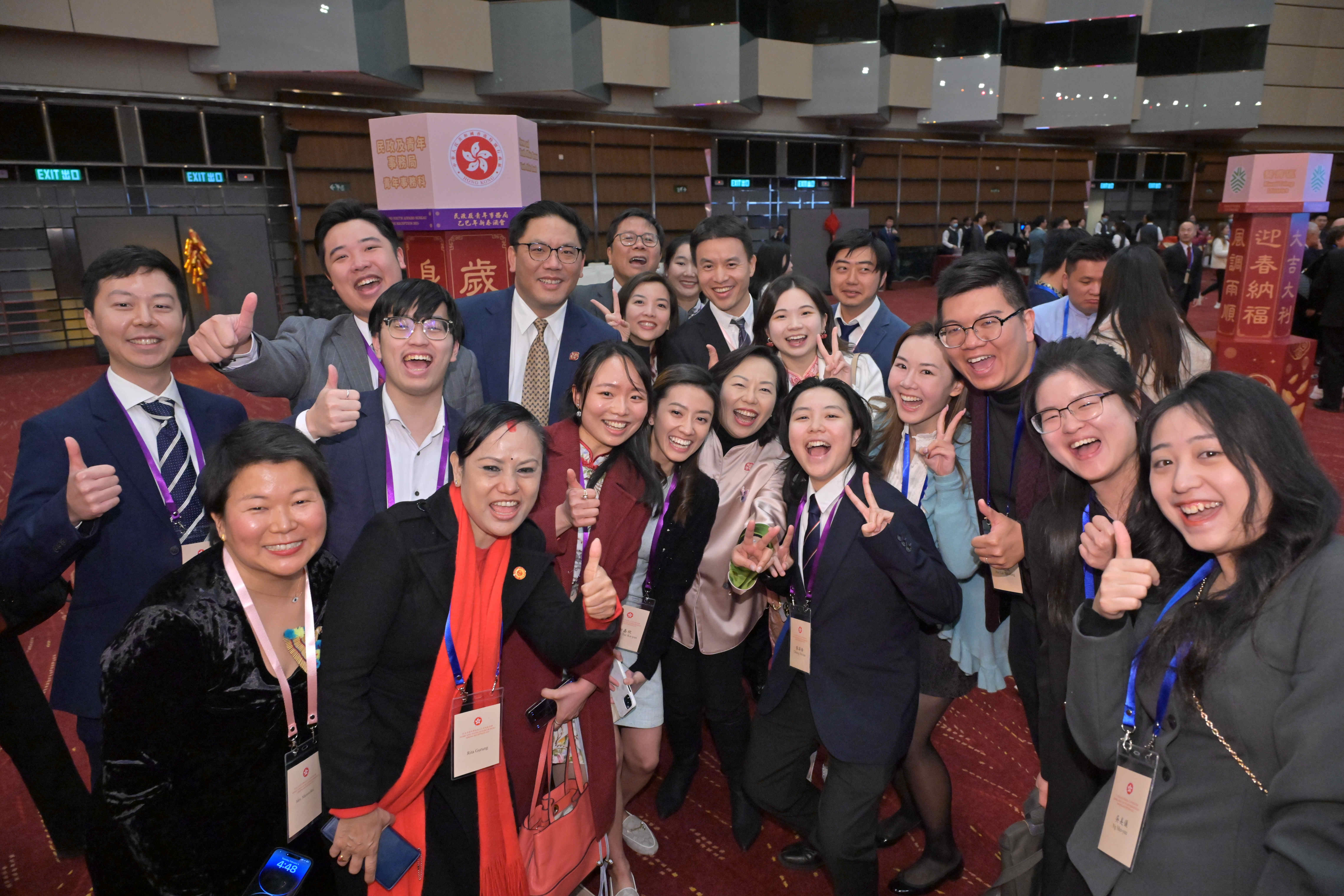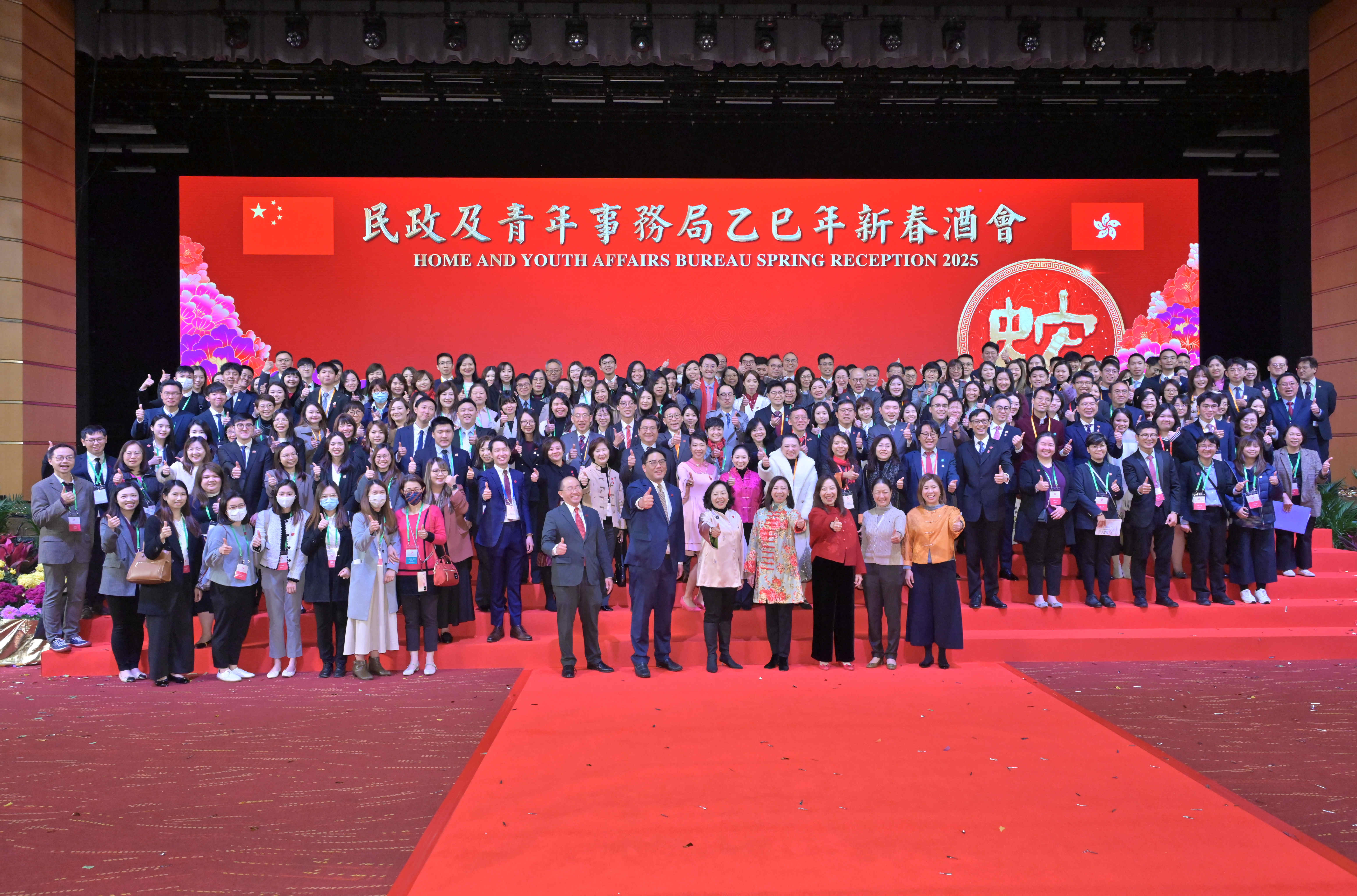 正月初七人日,民政及青年事務局舉辦新春酒會,行政長官、各政府官員、行會成員、立法會議員和地區各界人士聚首一堂,共慶新春。