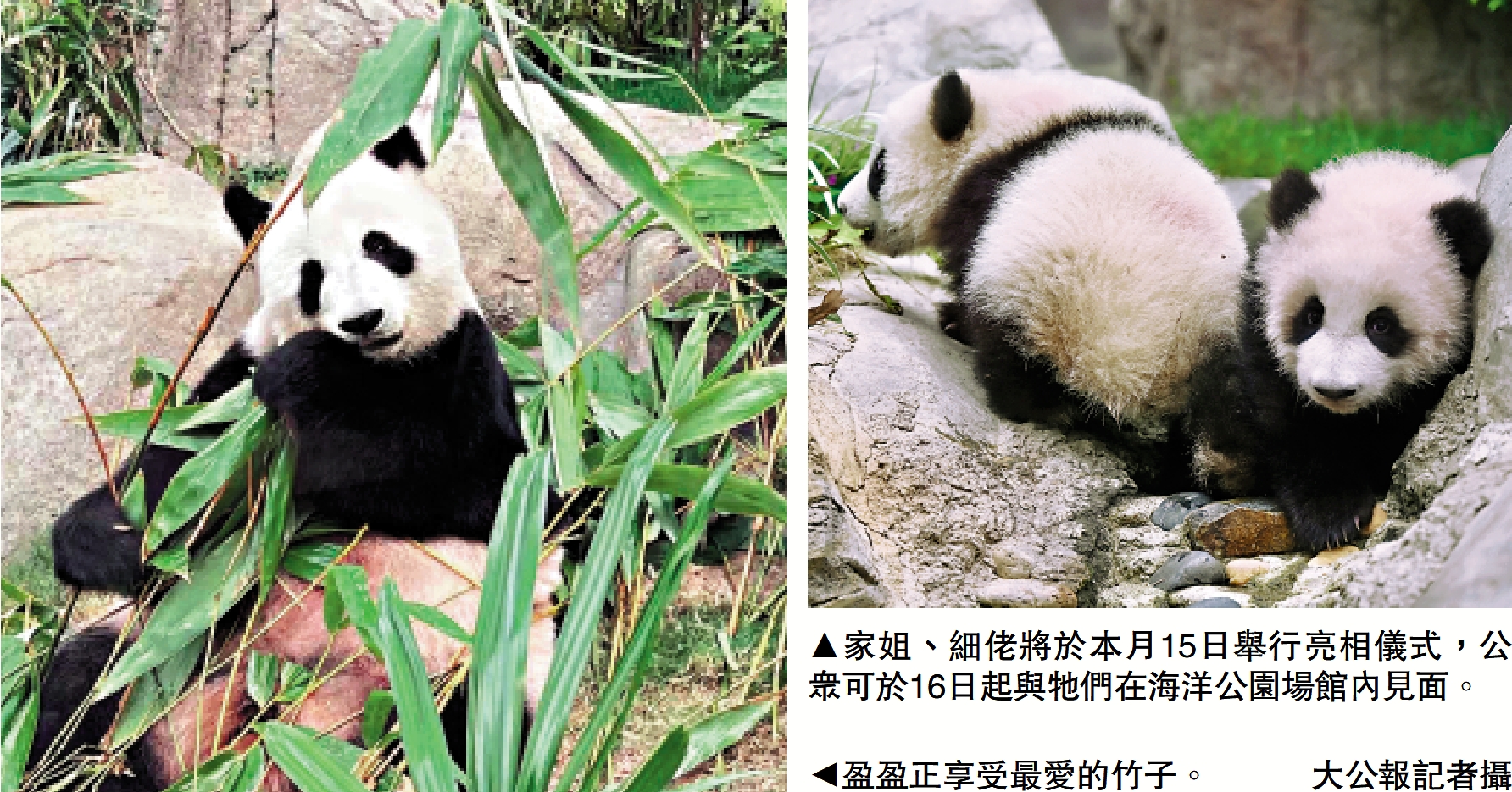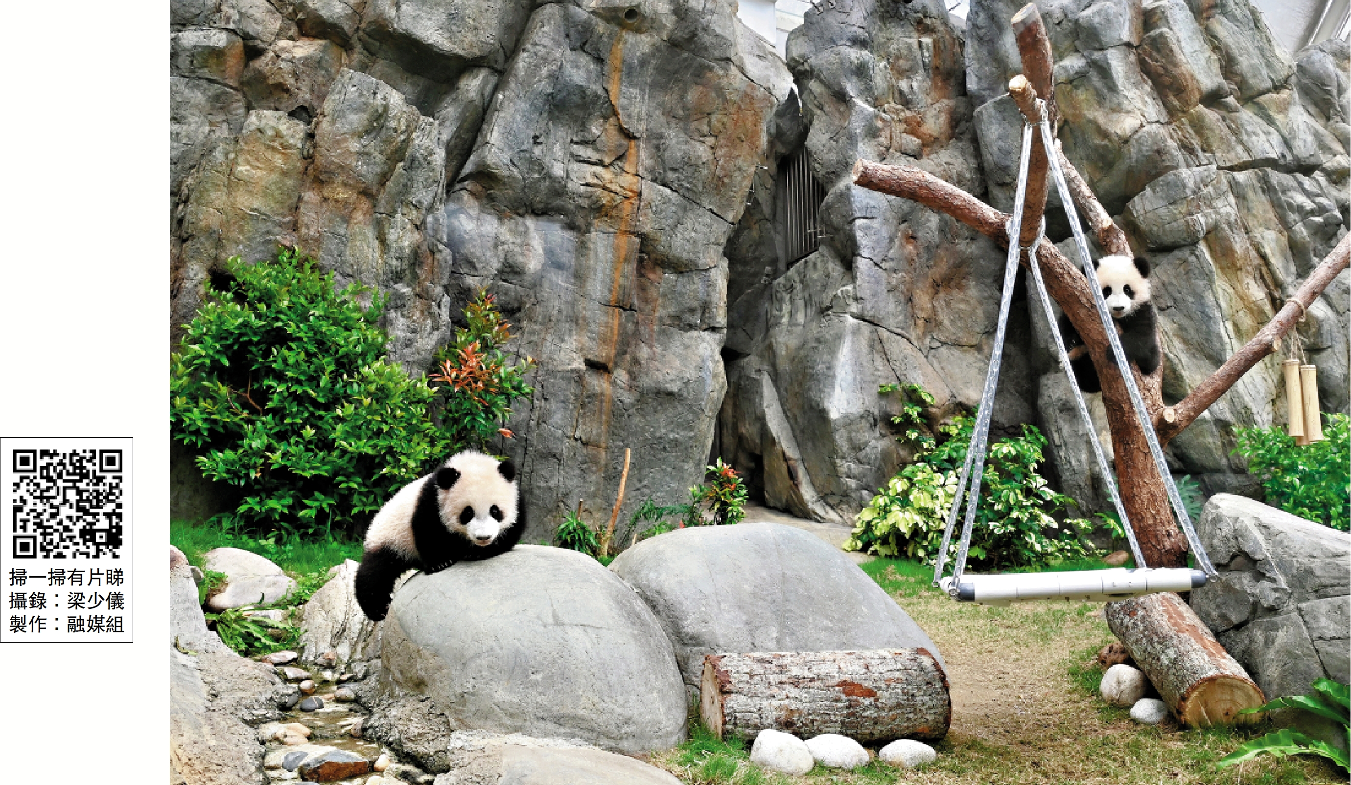 (大公報 記者 劉碩源)大熊貓龍鳳胎將於2月16日正式與公眾見面。昨日早上大公報記者率先入場了解大熊貓寶寶的生活情況。現場所見,「家姐」和「細佬」活潑好動,短暫午休過後就「爬上爬落」。據了解,家姐、細佬亮相後初期,在自己的外場園區活動,需要餵奶及回到內場時會和「盈盈」一起,園方預期今年內牠們可與媽媽盈盈一起在外場活動。旅遊業界預期,大熊貓龍鳳胎亮相可掀起新一波熱潮,下月或會有以家姐、細佬作招徠的旅行團。