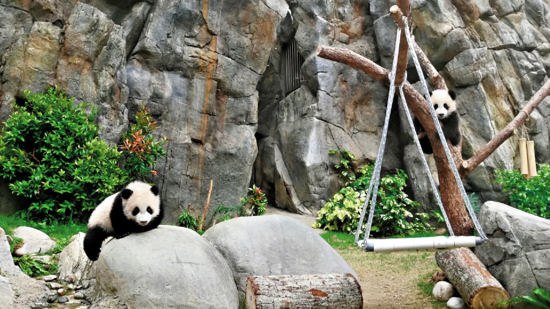 目前家姐和細佬,連同媽媽盈盈及爸爸樂樂,一家四口住在「大熊貓之旅」場館內,但牠們的活動場地互不相通。家姐和細佬的園區以玻璃圍起,盈盈居住隔鄰的園區則沒有玻璃圍封,據了解,這安排是由於龍鳳胎尚年幼,玻璃有助減少人群氣味和噪音影響,而且盈盈園區內有一些高位,對小姊弟可能有風險。現時,盈盈每日會在內場照顧小姊弟,園方將視乎家姐和細佬適應情況調整場地安排,希望三母子今年內可以在同一園區內活動。