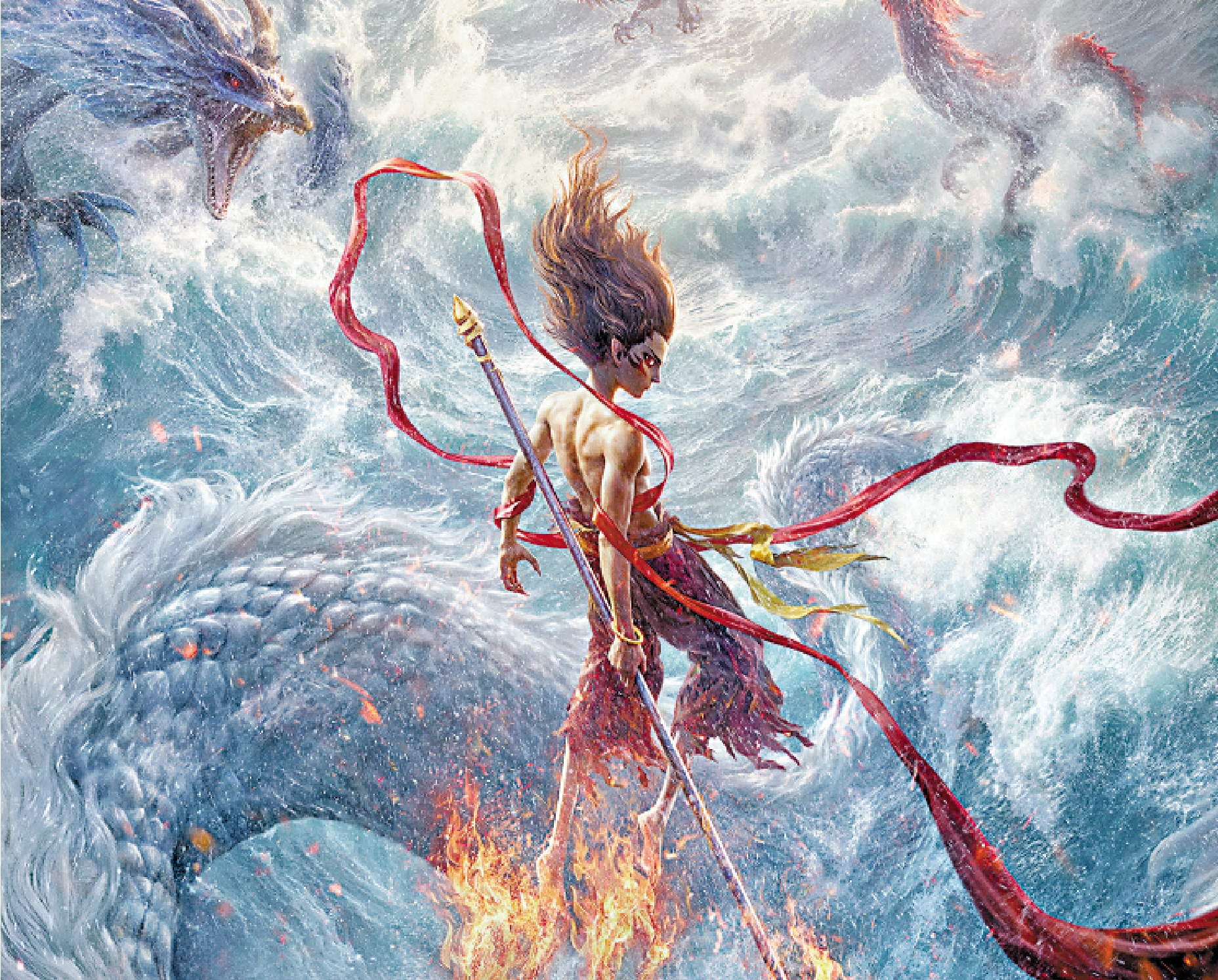要做出讓觀眾滿意的效果,洛克特視效不斷進行技術極限突破。因為技術所限,不太敢挑戰海水製作,前作哪吒與敖丙的海上初遇是點到即止。但到了《哪吒2》,哪吒不但要下海,還要開海、鬧海。片中「海面被撕裂」的特效鏡頭直徑達5000米、深度3700米,相當於15艘航母的體量,其海水動態模擬的難度堪稱動畫電影之最。聶華軍強調,是觀眾的期待倒逼技術進步,而以藝術驅動技術的理念,也讓《哪吒2》的視效與角色情感深度綁定,強化了觀眾對角色命運的共情。