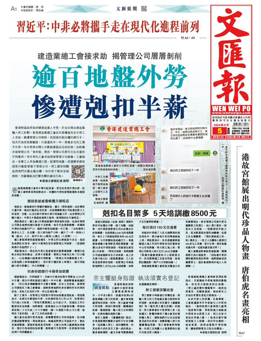 香港建造業總工會理事長周思傑昨日在接受香港文匯報訪問時表示,去年出現的多宗工人遭剝削及欺壓個案,都是因管理及中介公司的亂象造成,「許多時僱主只顧工程進度及質素,卻把外勞相關事宜交給中介(又稱代理人、管理公司)負責,令中介公司有機可乘。」