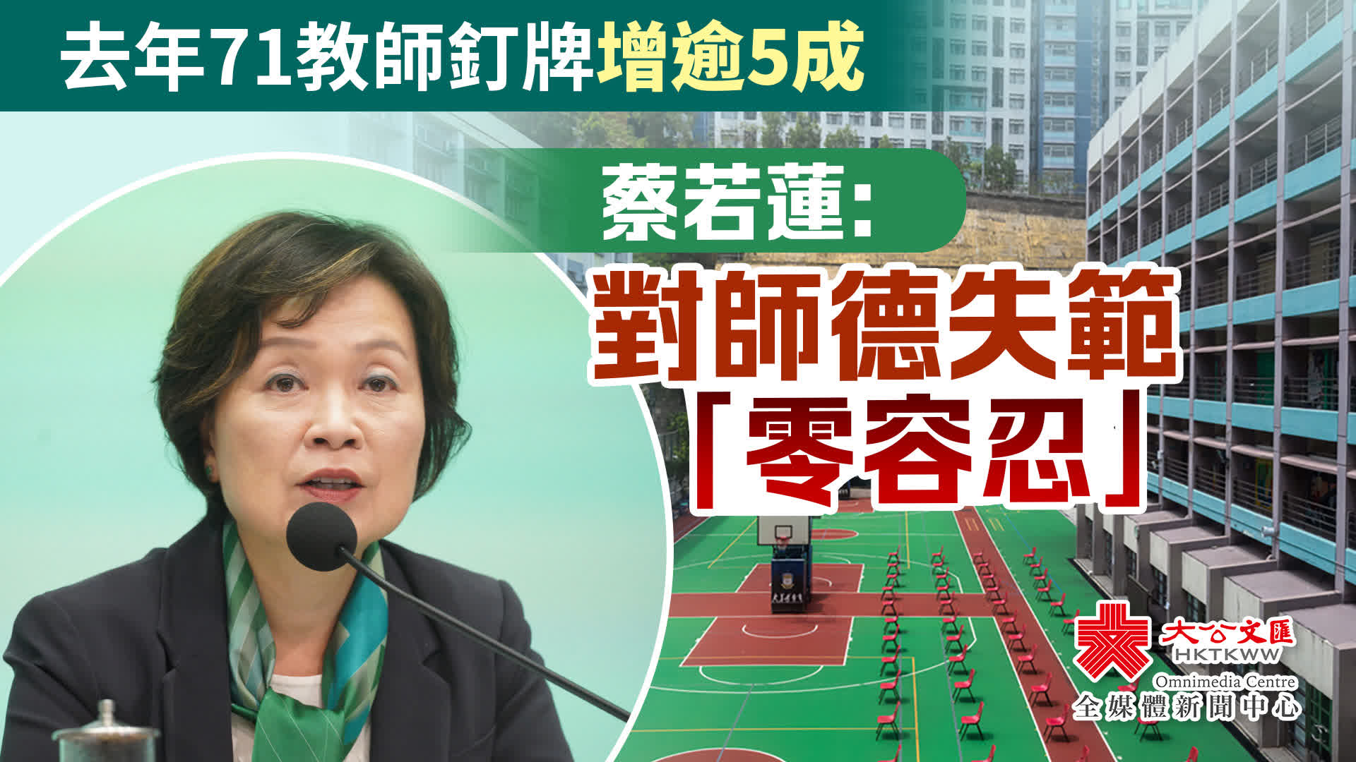 教育局向立法會呈交文件,教育局局長蔡若蓮今日(7日)在立法會一個委員會上指,對師德失範「零容忍」,會嚴格把關,當局已在2022年公布《教師專業操守指引》,會因時制宜,按需要更新指引內容。
