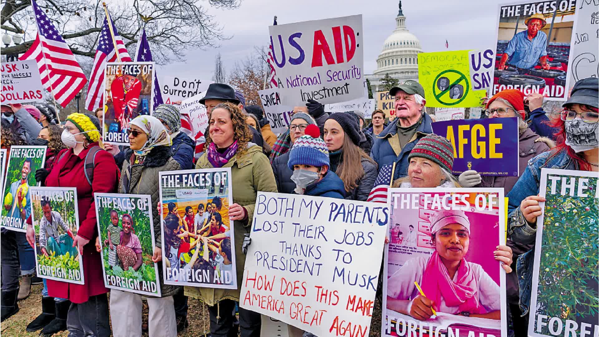 大公報綜合報道,在美國總統特朗普的授權下,馬斯克領導的政府效率部(DOGE)展開「聯邦大瘦身」,美國國際開發署(USAID)成為首個被大幅裁減的對象。消息人士透露,特朗普政府計劃對美國國際開發署全球裁員萬人,可能只有數百人可以留任。美國最大的政府工會和外交服務人員協會已於6日起訴特朗普。特朗普7日在社交媒體發帖稱,USAID應該關閉。