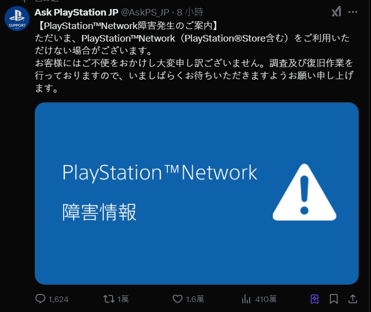 大公文匯全媒體報道,2月8日,Sony PlayStation Network(PSN)爆發全球性大死機,導致大量玩家無法登入,影響範圍涵蓋PS5、PS4、PS3及PS Vita,所有線上服務目前皆無法使用,包括遊戲啟動、應用程序運行、社交功能以及PlayStation商店等。