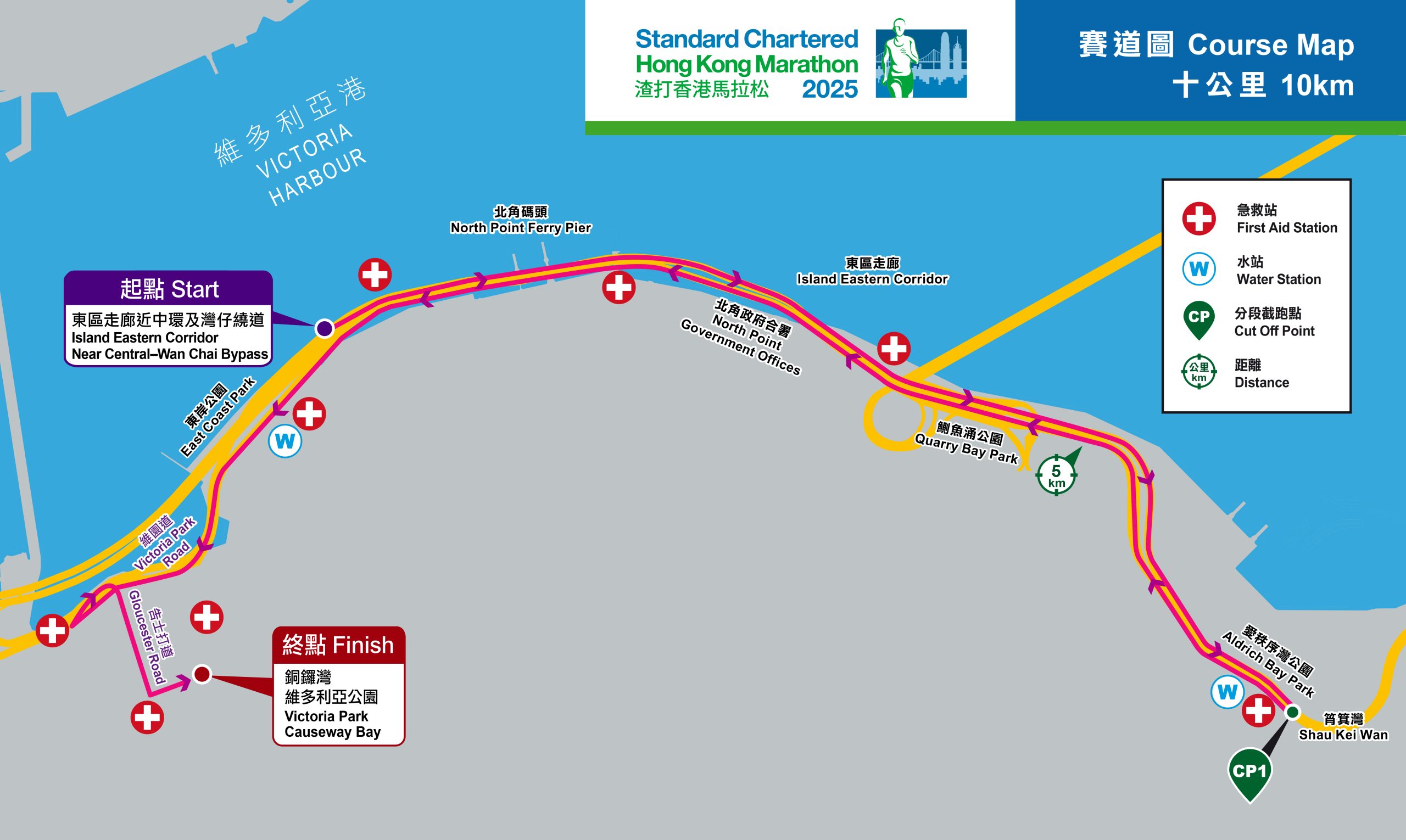 大公文匯全媒體報道,渣打香港馬拉松2025(渣馬)今日(9日)開跑,賽事分為全馬、半馬、10公里及輪椅賽4個組別,全馬和半馬賽事由尖沙咀彌敦道起步,10公里賽由東區走廊近中環及灣仔繞道起步,幾項賽事終點都為銅鑼灣維多利亞公園。