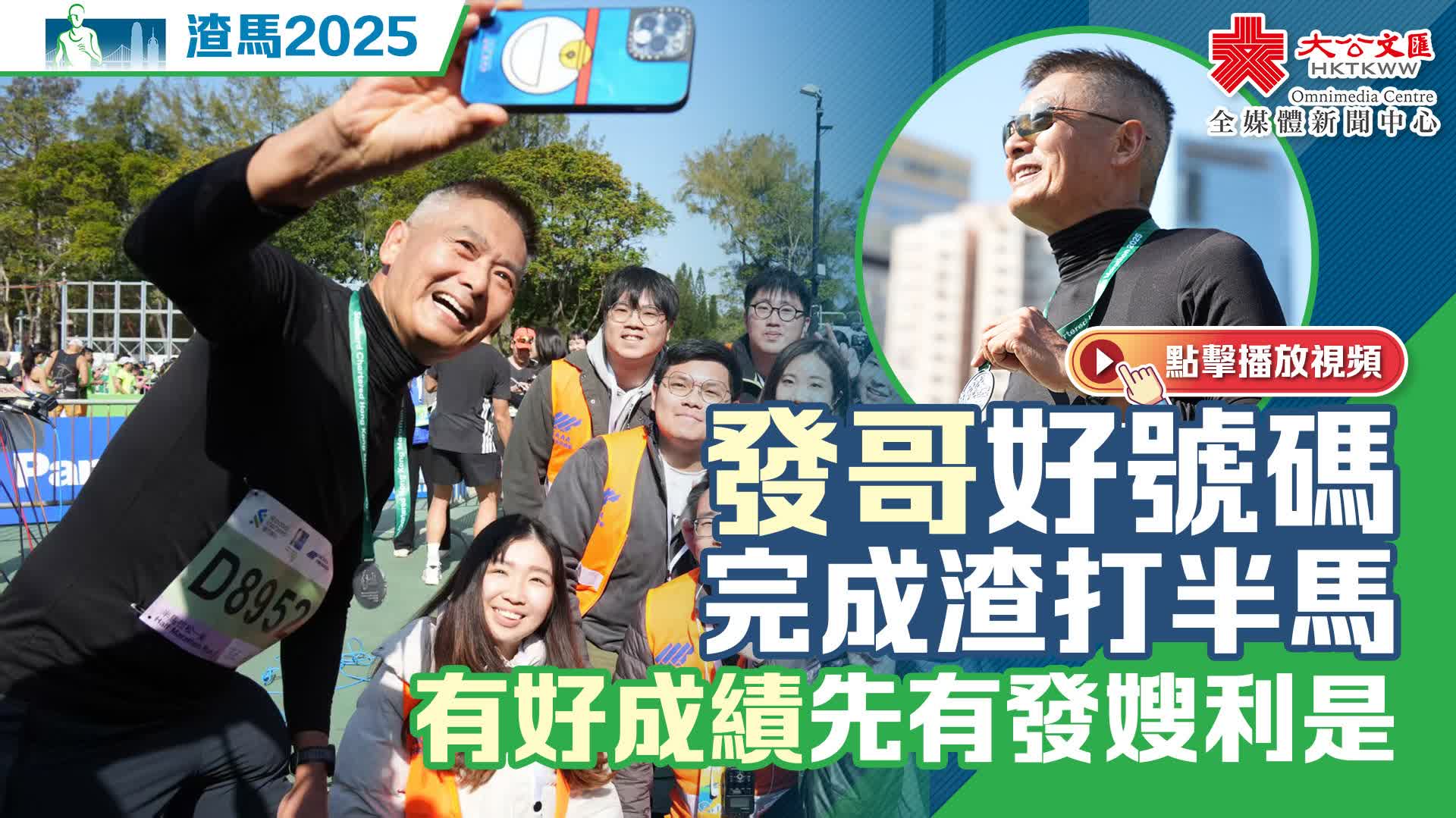 (大公文匯全媒體記者 王俊傑)渣打香港馬拉松2025(渣馬)今日(9日)開跑,影帝周潤發(「發哥」)以2小時24分完成半馬。周潤發的編號為D8952,他向記者表示,今日天公造美,狀態很好,「有好成績,先有人工收」,期望明年2小時20分完成,進一步爭取成績至2小時內。對於會否參加其他比賽,他表示如果時間許可就有意參與,但自己喜歡留港參賽,稍後會到附近食碗仔翅「醫肚」。
